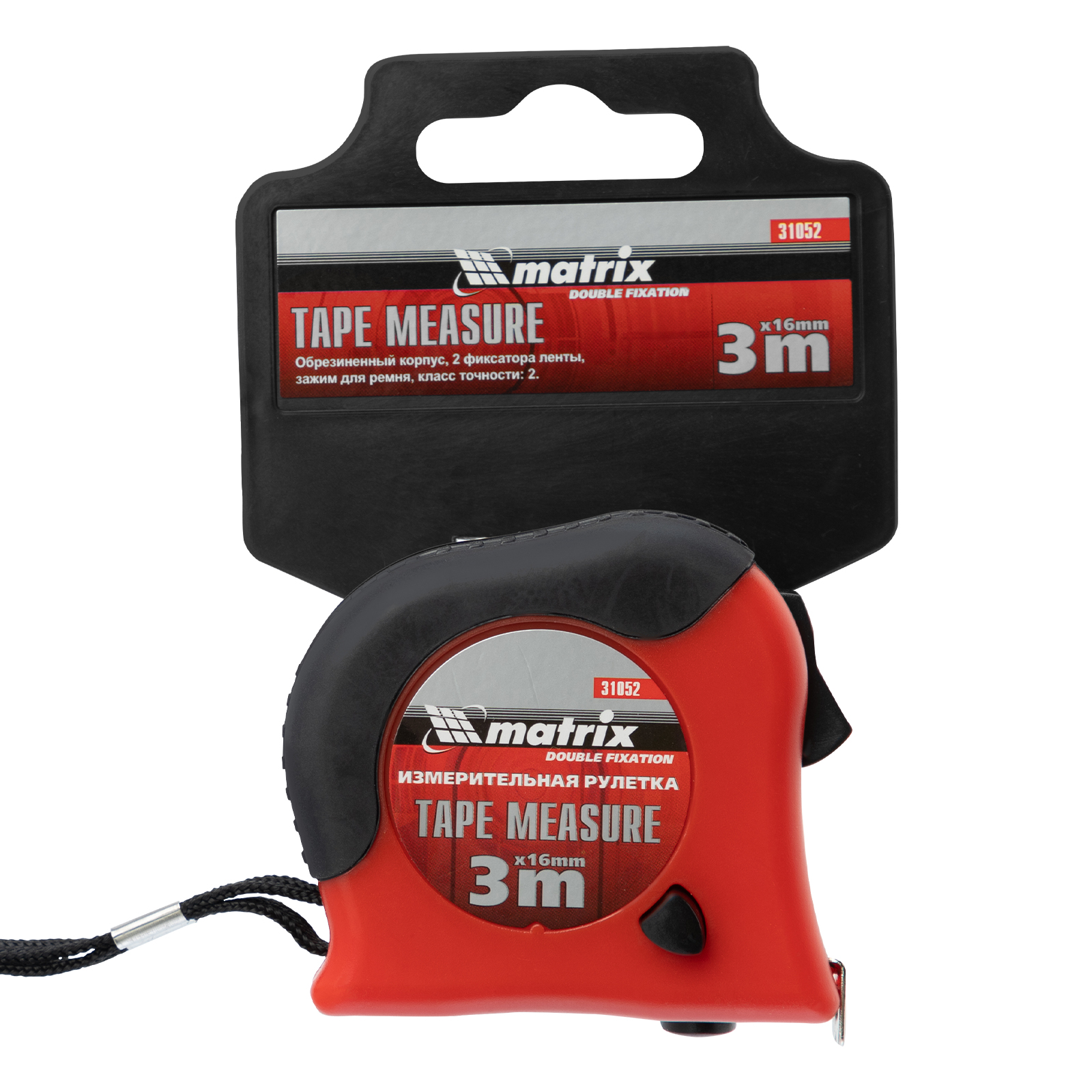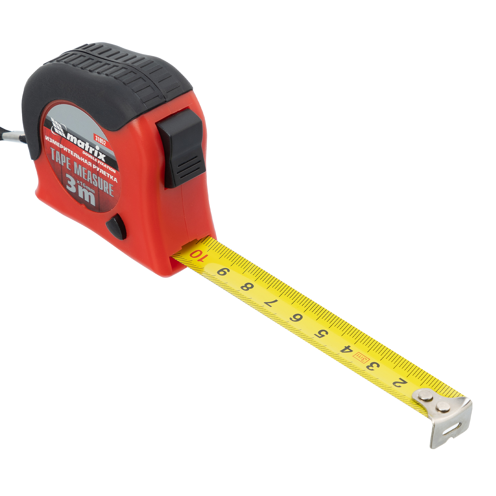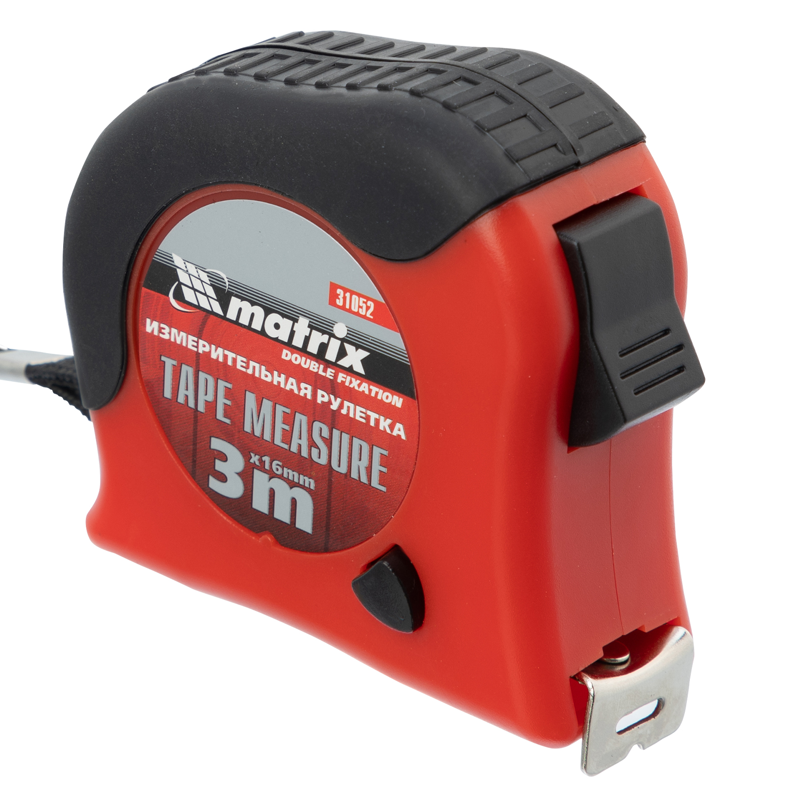 Рулетка Double fixation,3 м х 16 мм,обрезиненный корпус,двойная плавная фиксация Matrix в Краснодаре