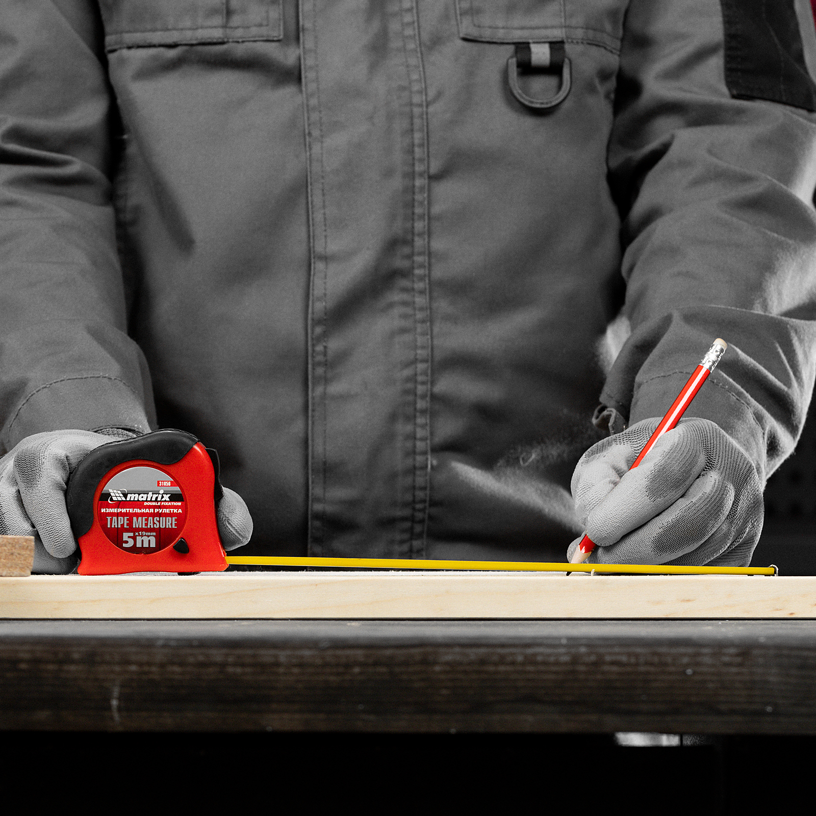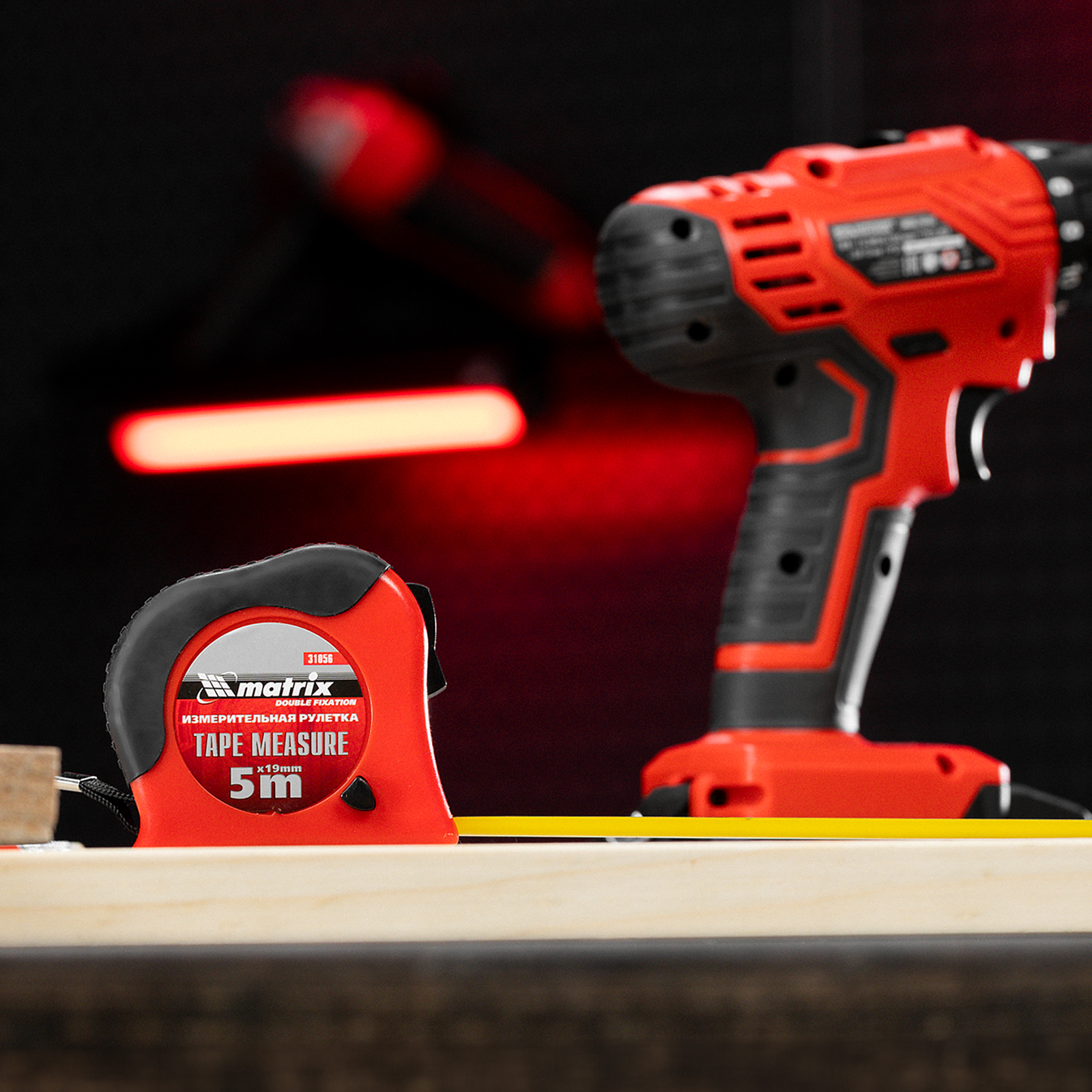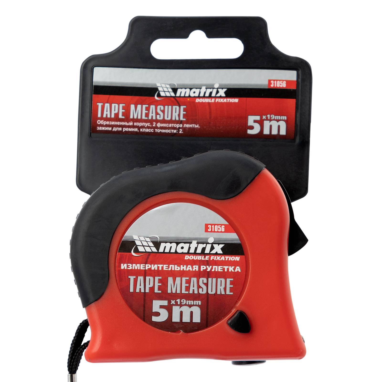 Рулетка Double fixation,5 м х 19 мм,обрезиненный корпус,двойная плавная фиксация Matrix в Краснодаре