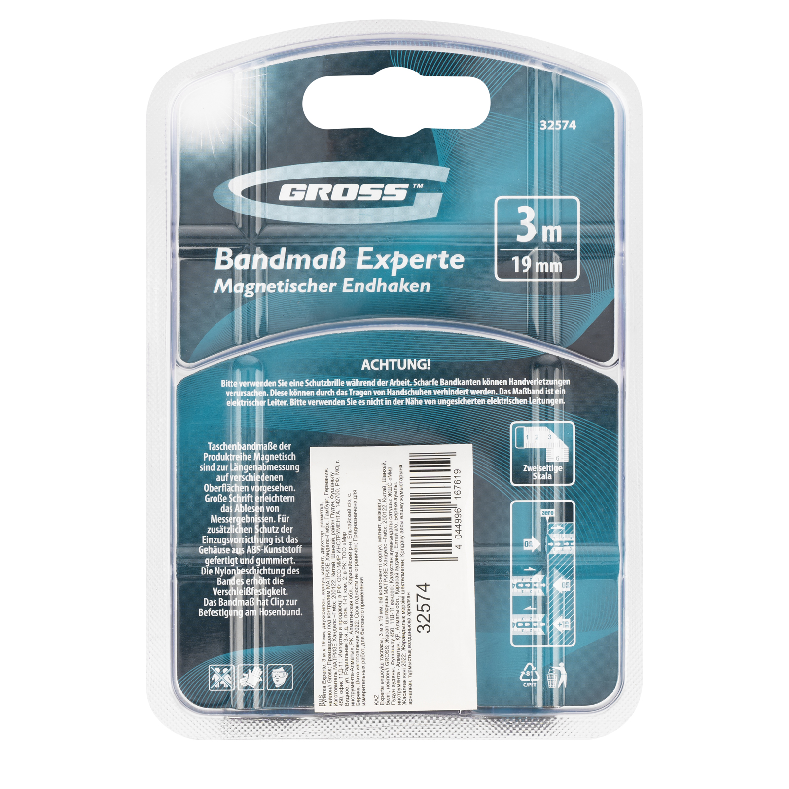 Рулетка Experte,3 м x 19 мм,двухкомпонентный корпус,магнит,двухсторонняя разметка,нейлон Gross в Краснодаре