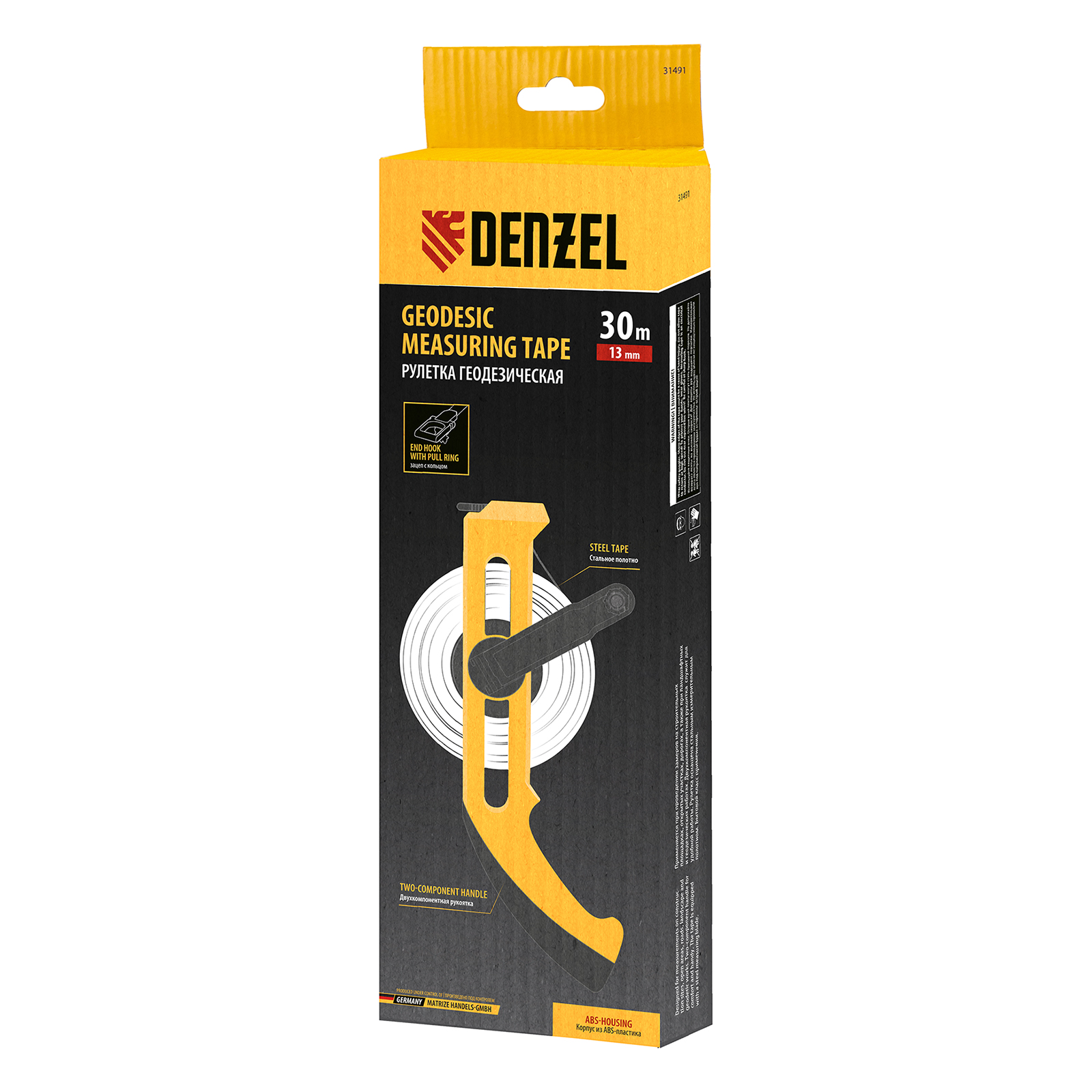 Рулетка геодезическая 30 м х 13 мм, открытый корпус, металлическая лента Denzel в Краснодаре