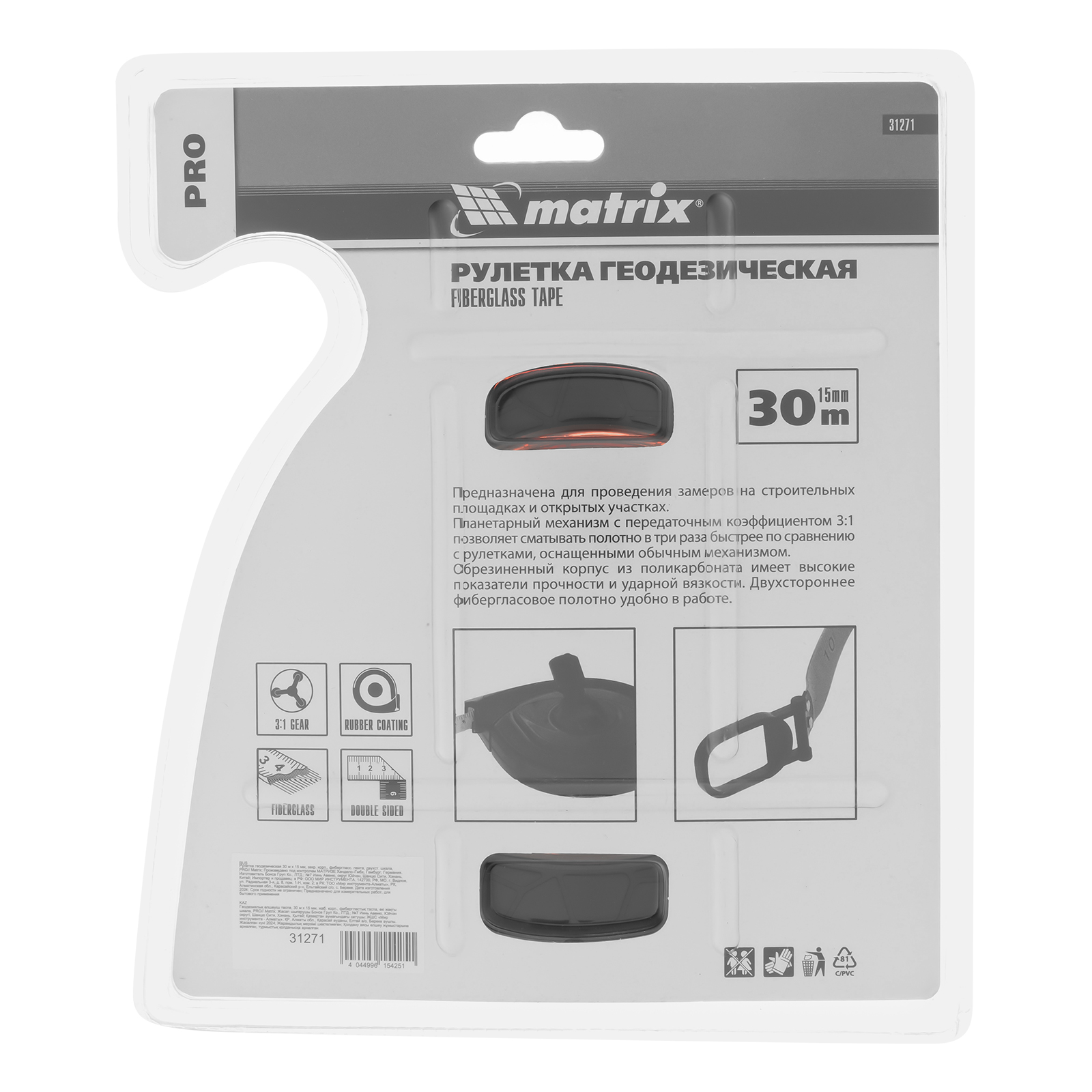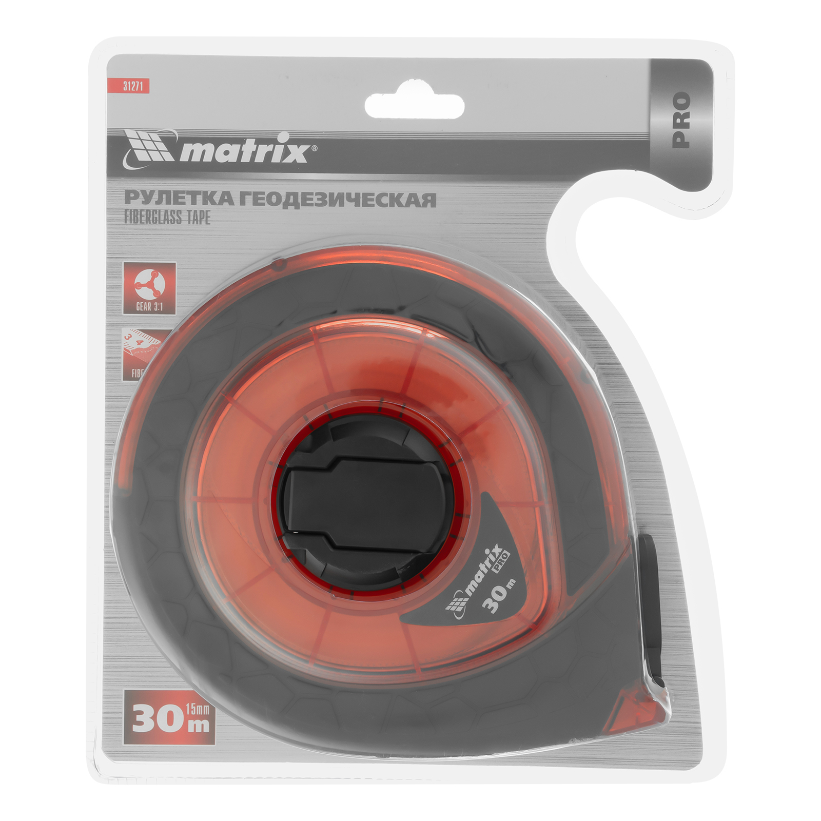 Рулетка геодезическая 30 м х 15 мм, закрытый корпус, фибергласовая лента, двусторонняя шкала, Pro Matrix в Краснодаре