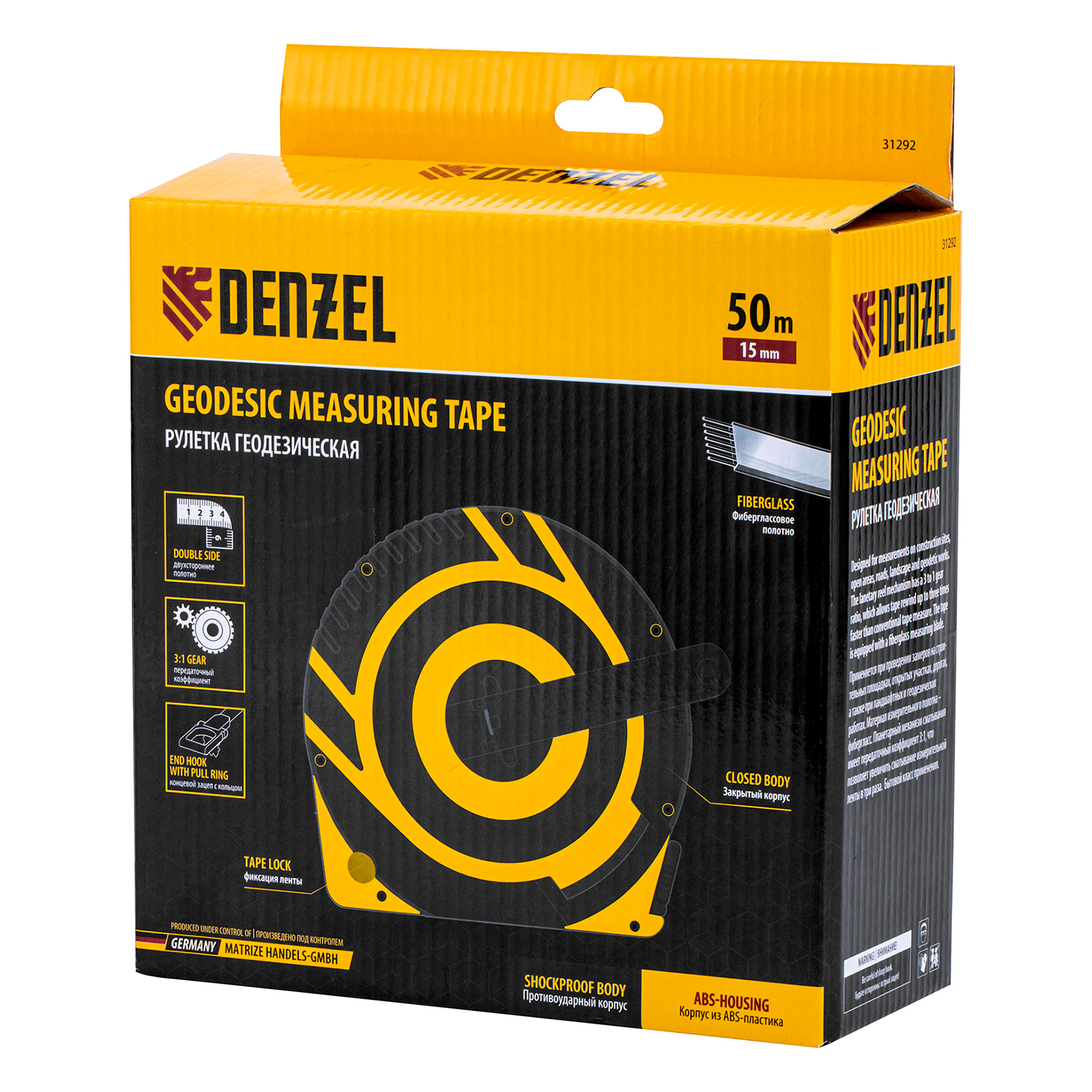 Рулетка геодезическая 50 м х 15 мм, закрытый корпус, фиберглассовая лента Denzel в Краснодаре