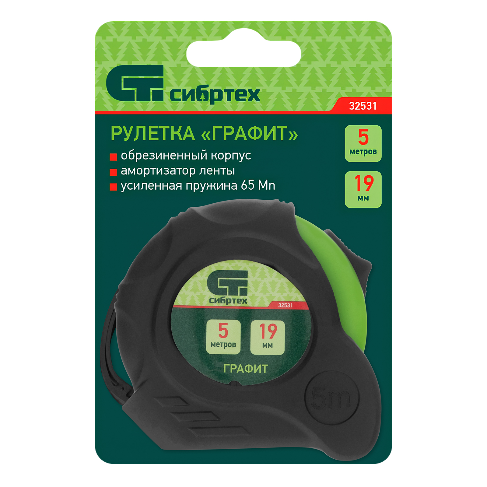 Рулетка Графит,обрезиненный корпус,амортизатор,5 м х 19 мм Сибртех в Краснодаре