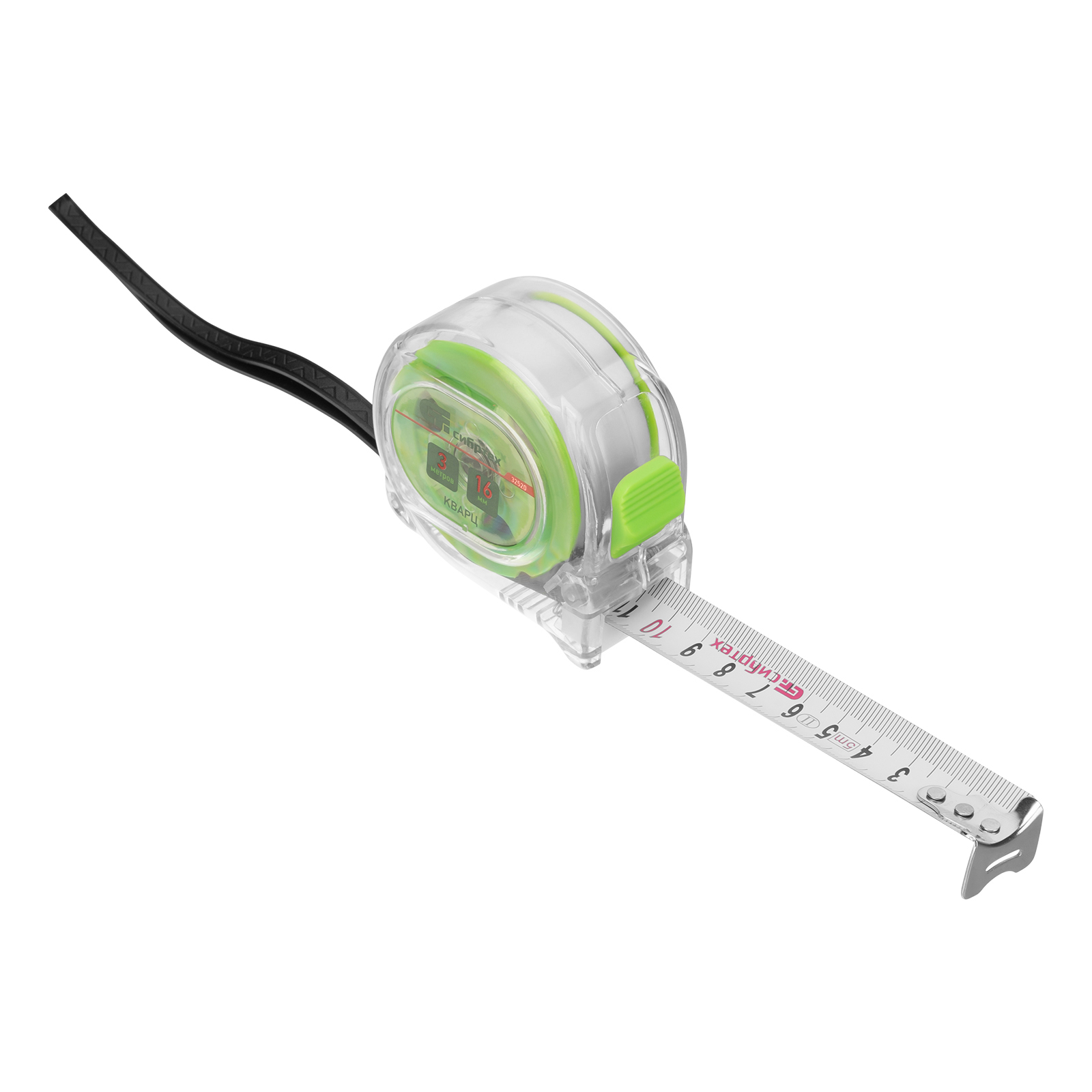 Рулетка Кварц,прозрачный корпус,амортизатор,3 м х 16 мм Сибртех в Краснодаре