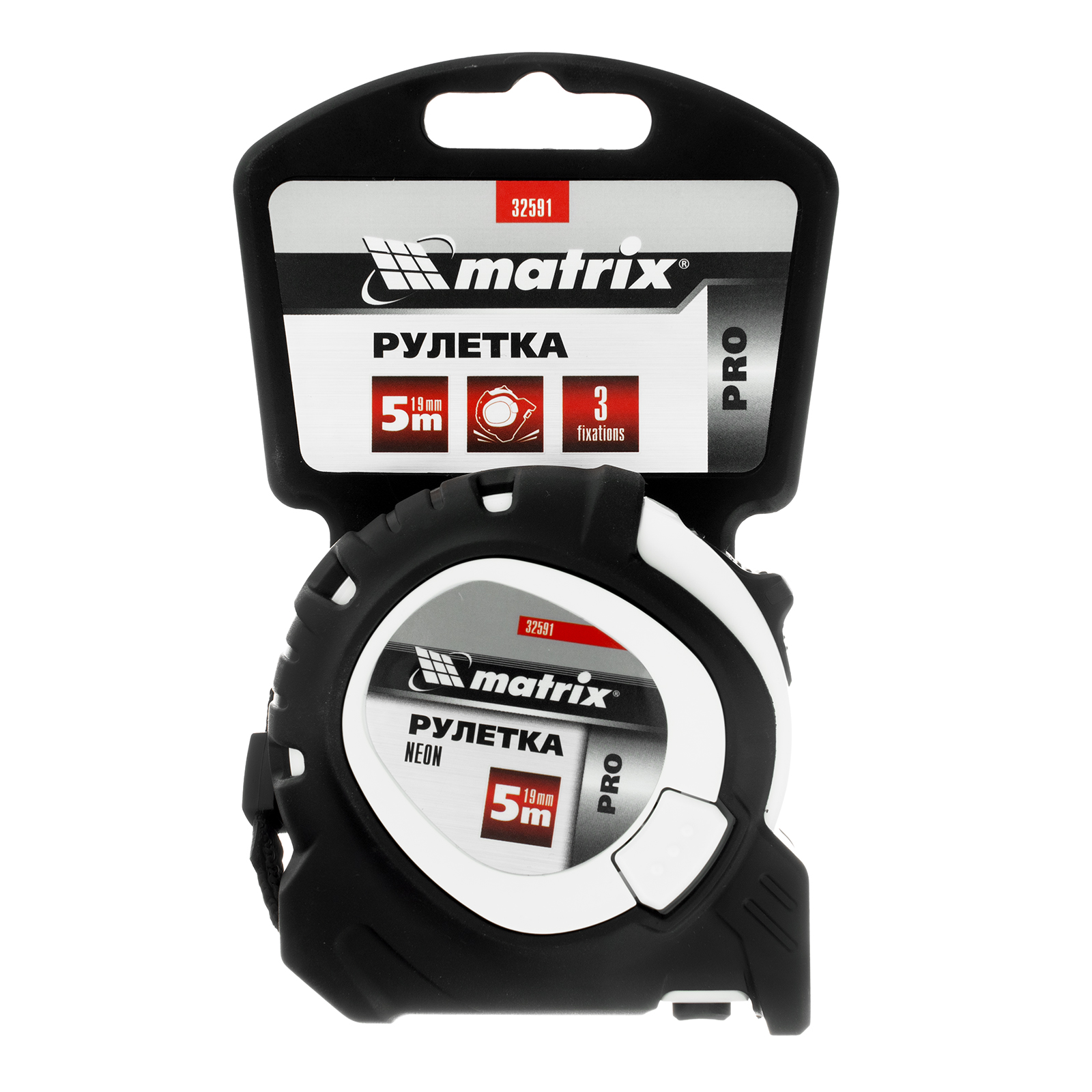 Рулетка Neon,5 м x 19 мм,обрезиненный корпус,3 фиксации,Pro Matrix в Краснодаре