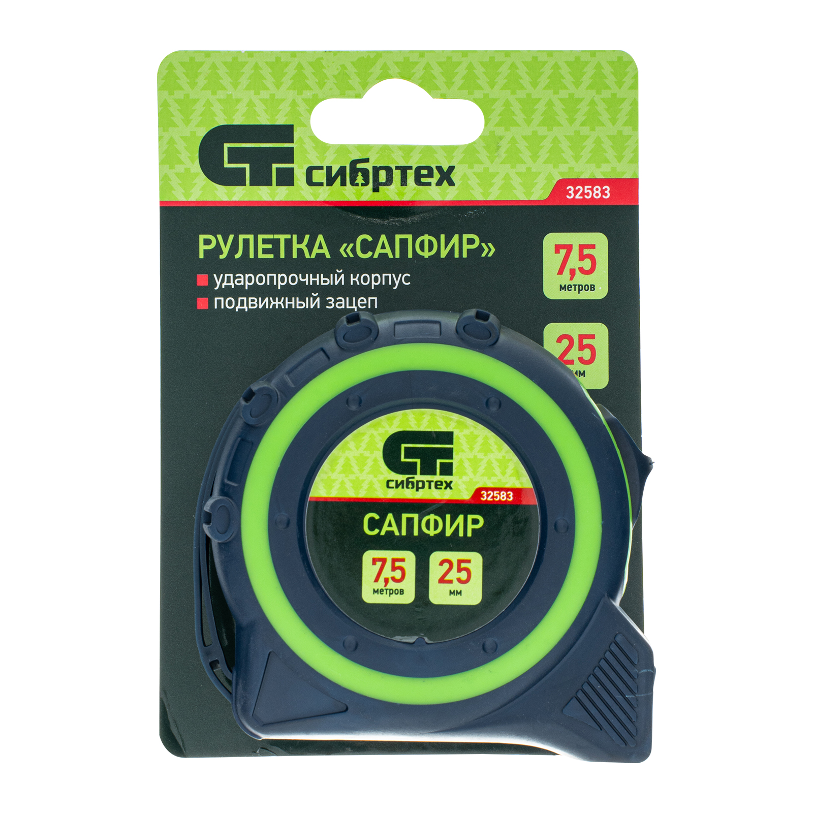 Рулетка Сапфир,двухкомпонентный корпус,7,5 м х 25 мм Сибртех в Краснодаре