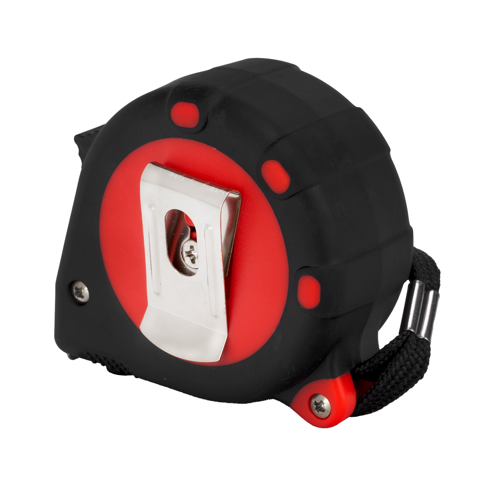 - Дополнительные возможности — нейлоновый ремешок позволяет подвесить рулетку на запястье, при помощи металлического зажима можно закрепить рулетку на поясе.