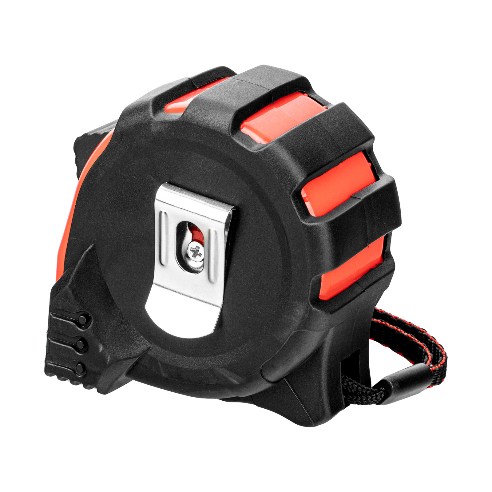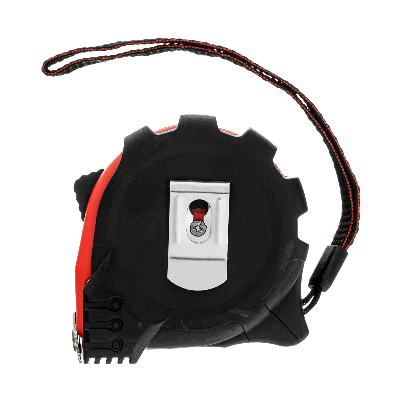 - Дополнительные возможности — шнурок для крепления на запястье уменьшает риск падения рулетки, на боковой поверхности имеется зажим для фиксации рулетки на поясном ремне.
