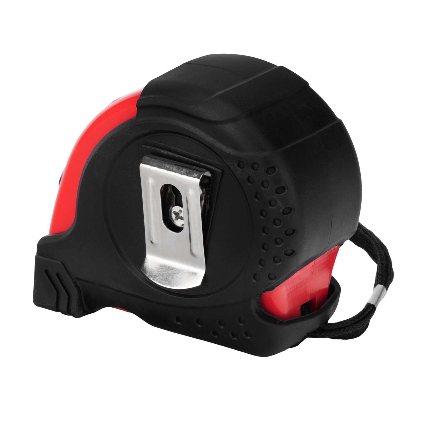 - Дополнительные возможности — шнурок для крепления на запястье уменьшает риск падения рулетки, на боковой поверхности имеется зажим для фиксации рулетки на поясном ремне.