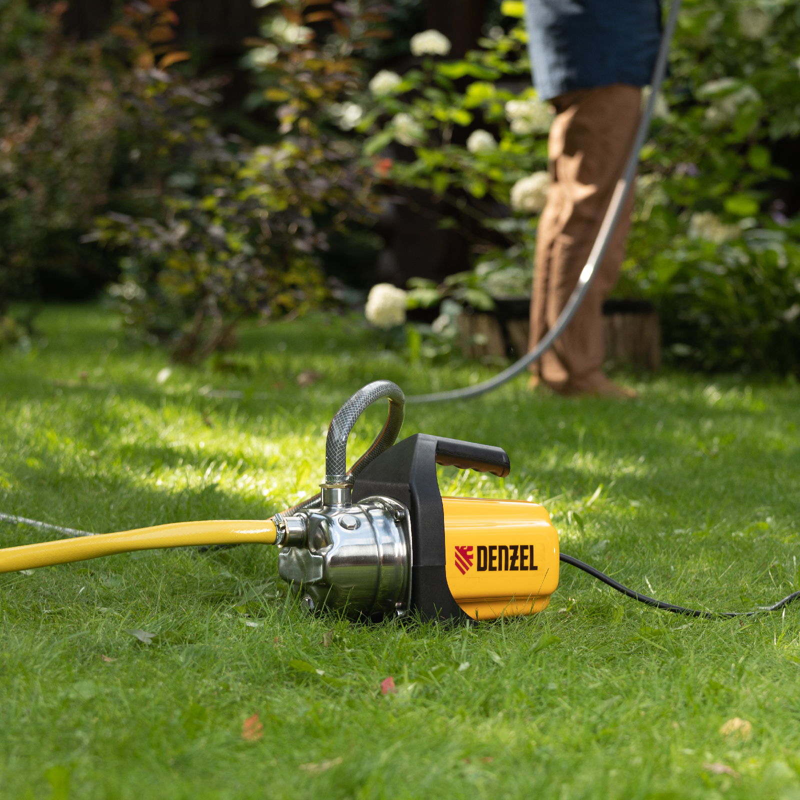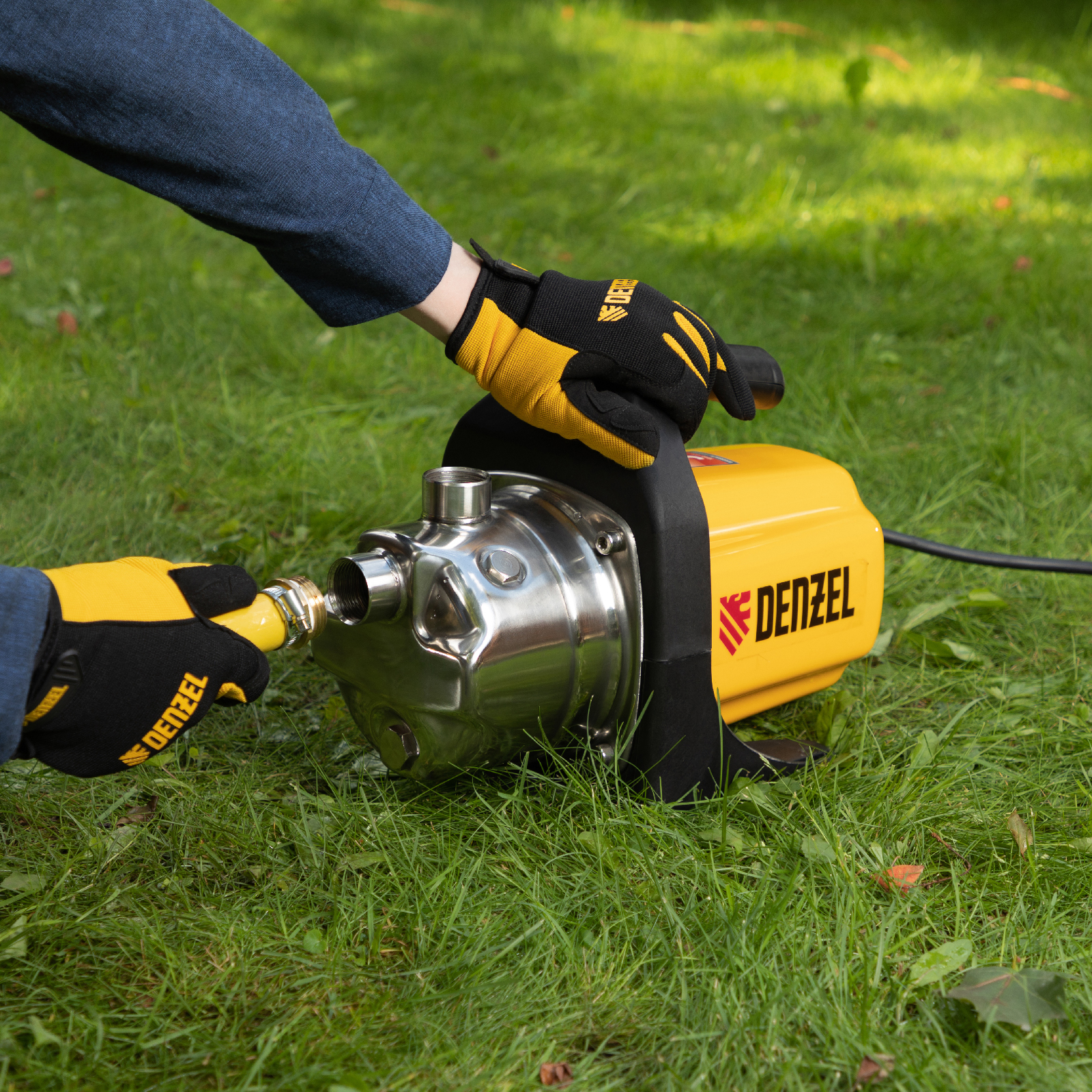 Садовый поверхностный насос Denzel GP1000X 97202 с корпусом из «нержавейки», мощностью 1000 Вт и производительностью 3500 л/ч, позволяет перекачивать большие объемы чистой воды из резервуаров и колодцев глубиной до 8 м, а высоты подъема до 44 м хватает для питания систем полива и водоснабжения загородного дома. Благодаря высокой производительности насос обеспечивает подачу воды сразу в несколько точек разбора.