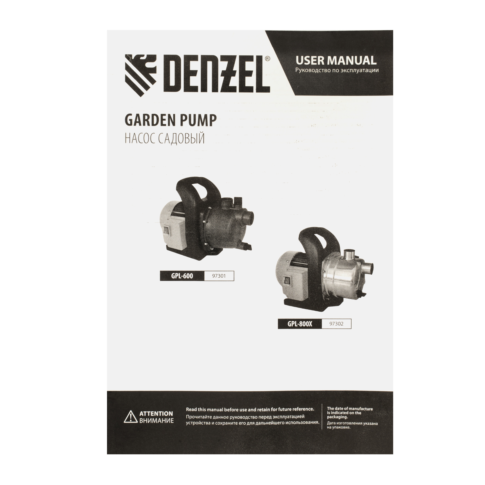 Садовый поверхностный насос GPL800Х, 800 Вт, 3200 л/ч, подъем 42 м, нержавейка Denzel в Краснодаре