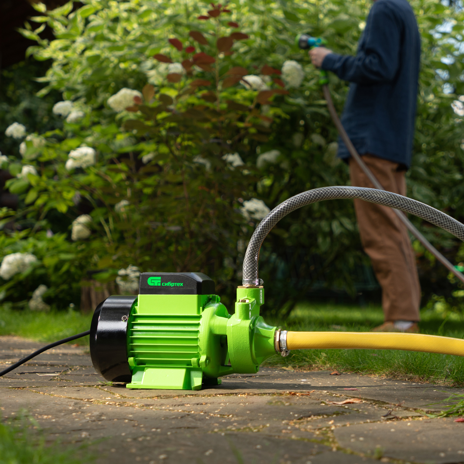 Садовый поверхностный насос Сибртех СПН370-Ч 97241 мощностью 370 Вт, с чугунным корпусом насосной части, осуществляет забор чистой воды со скоростью до 1700 л/ч с глубины до 8 м из водоемов, колодцев и резервуаров и обеспечивает напор до 25 м. Оптимален для организации систем полива и водоснабжения на даче. Создаваемого напора достаточно для подъема воды на верхние этажи частного дома без потери давления.