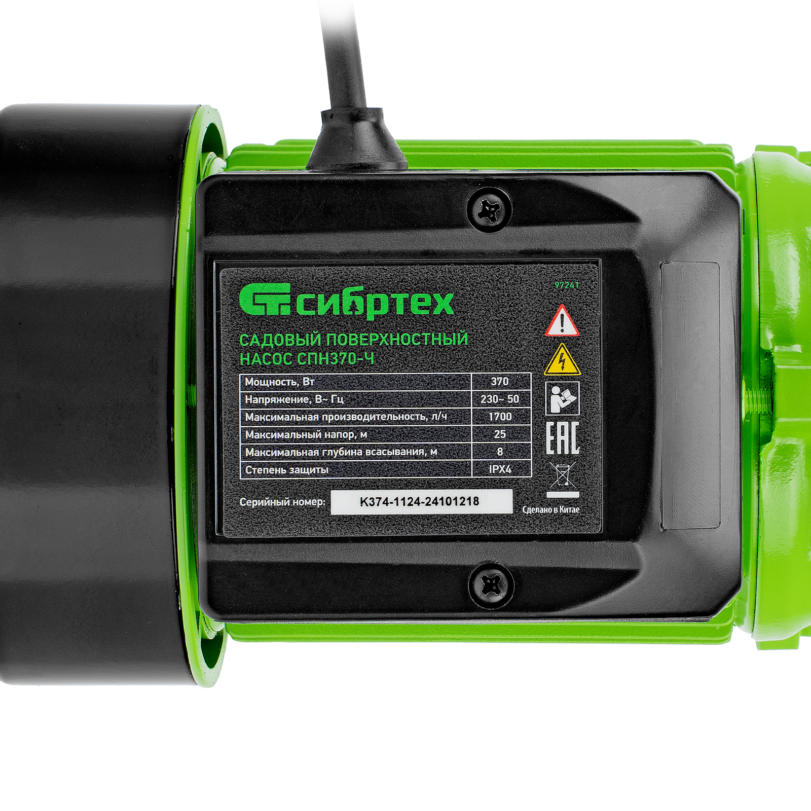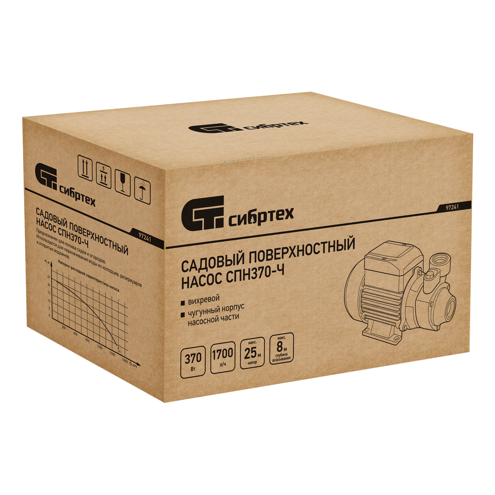 Садовый поверхностный насос СПН370-Ч, 370 Вт, напор 25 м, 1700 л/ч, чугун Сибртех в Краснодаре