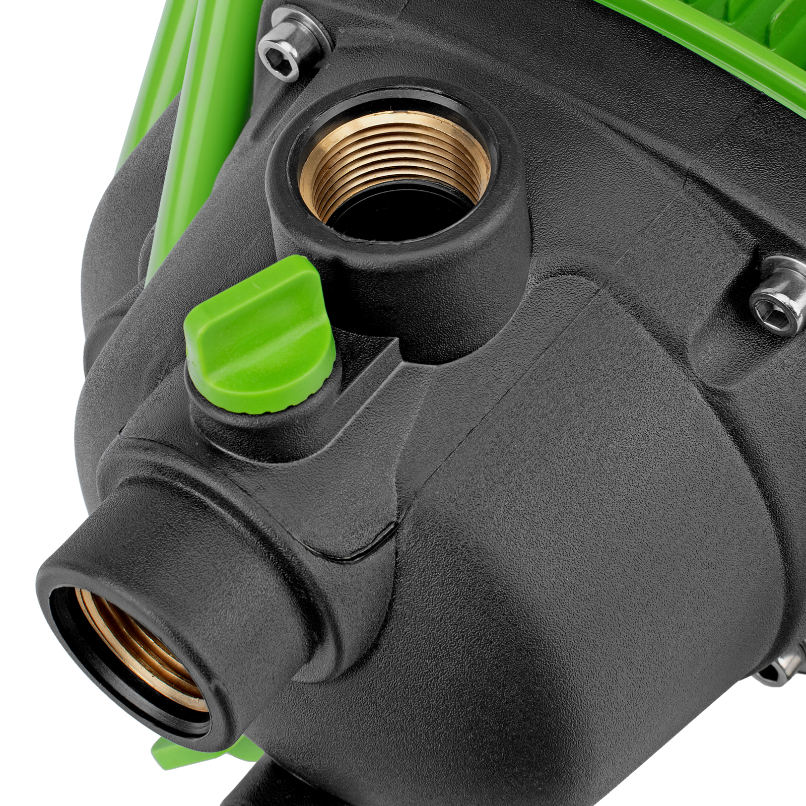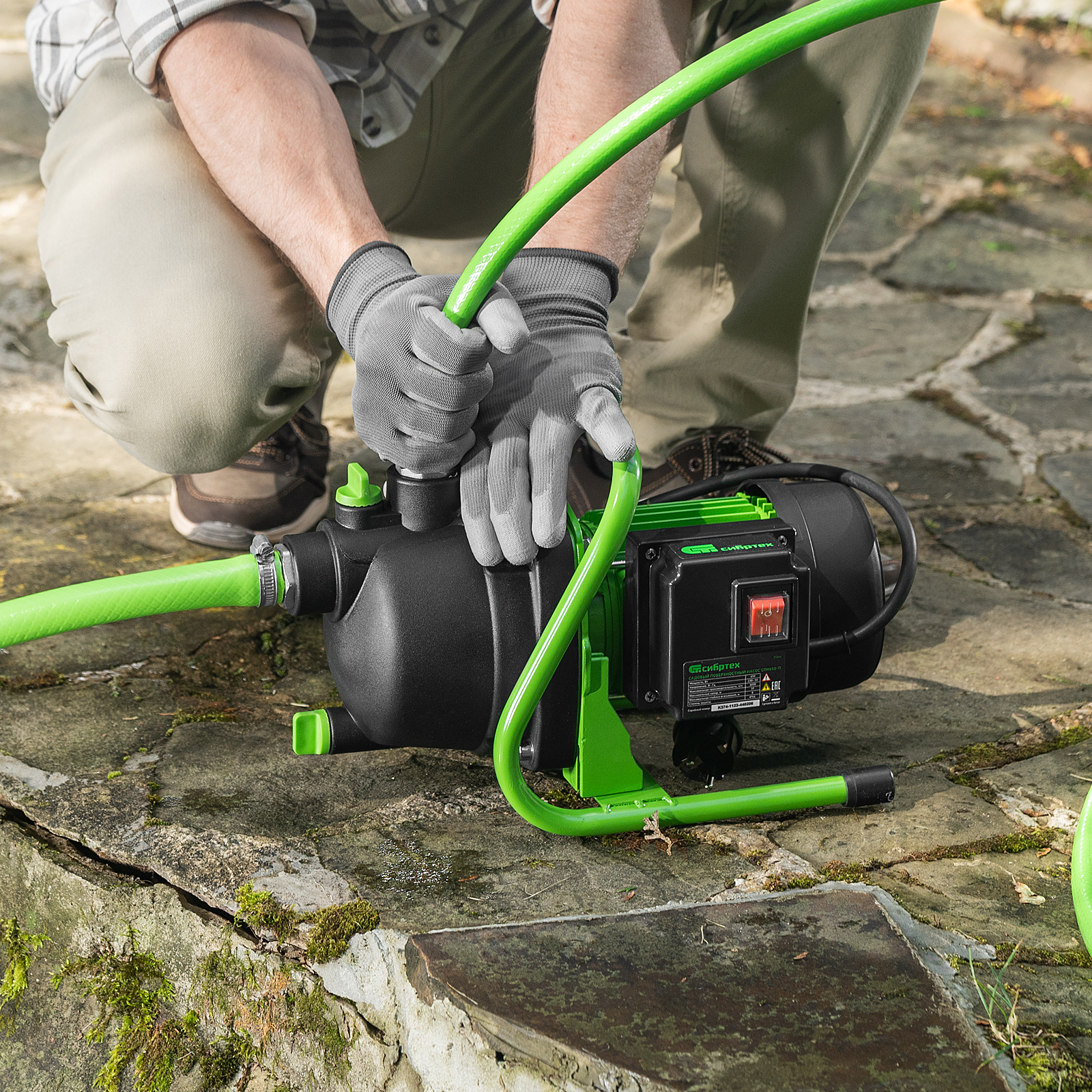 - Продуманная конструкция — металлические опоры с мягкими накладками обеспечивают устойчивость насоса и снижают уровень вибраций.