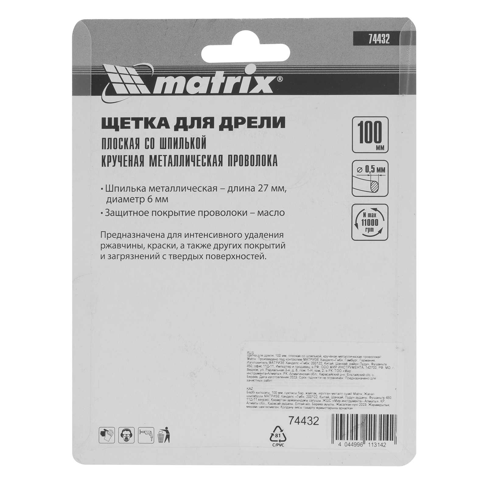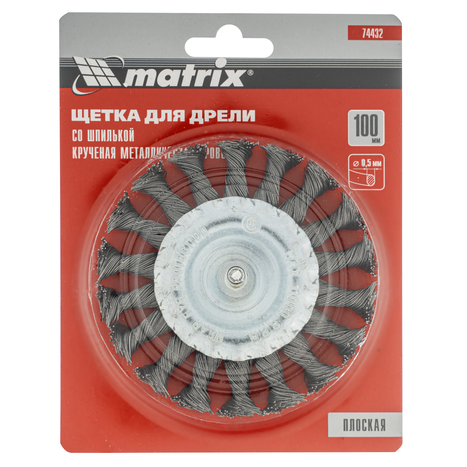 Щетка для дрели, 100 мм, плоская со шпилькой, крученая металлическая проволока Matrix в Краснодаре
