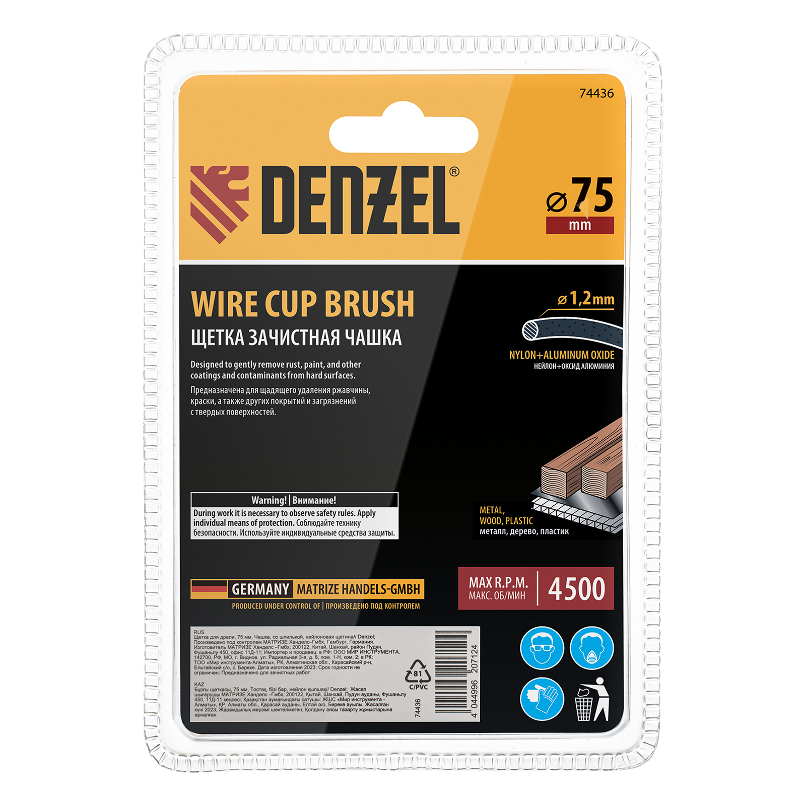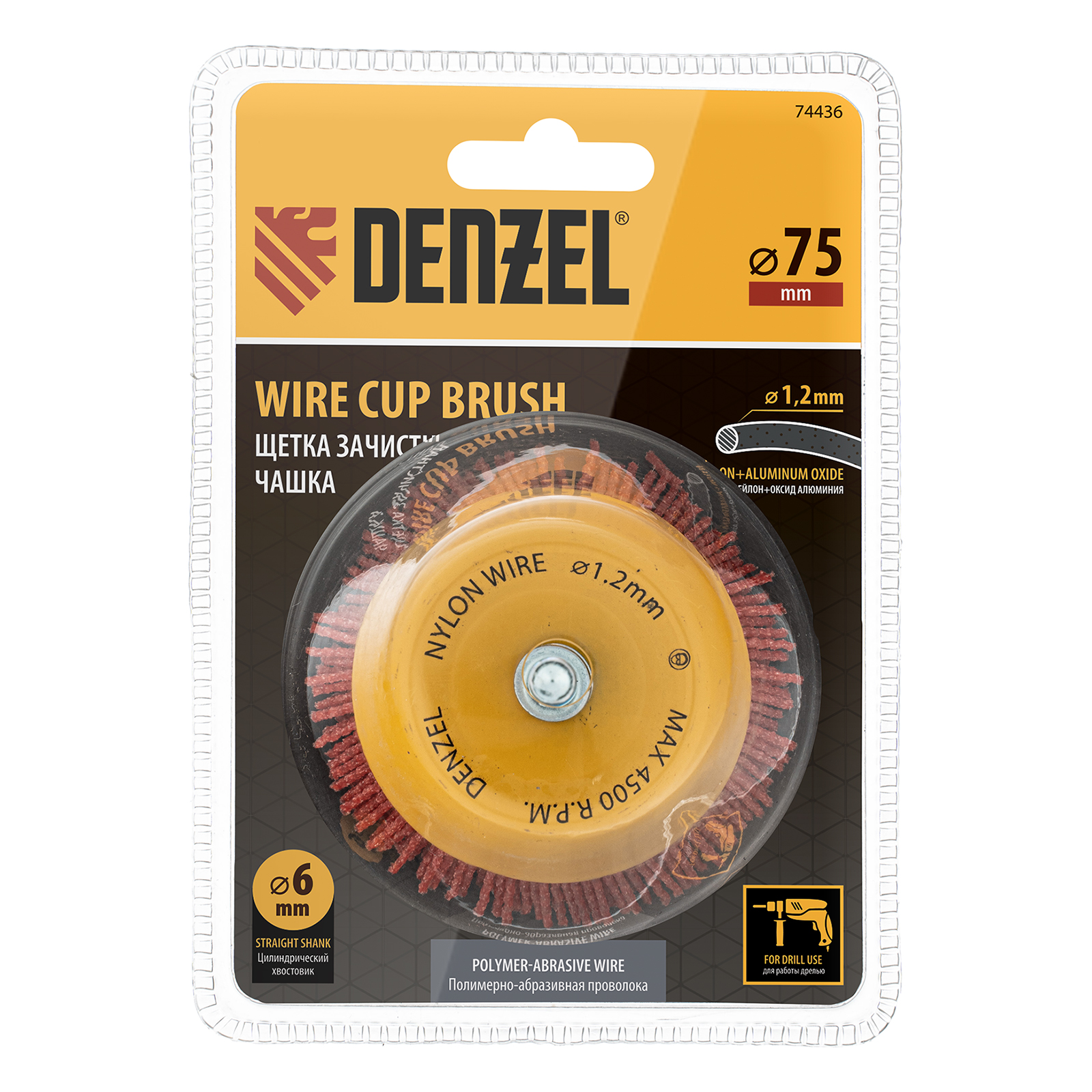 Щетка для дрели, 75 мм, Чашка, со шпилькой, нейлоновая щетина Denzel в Краснодаре