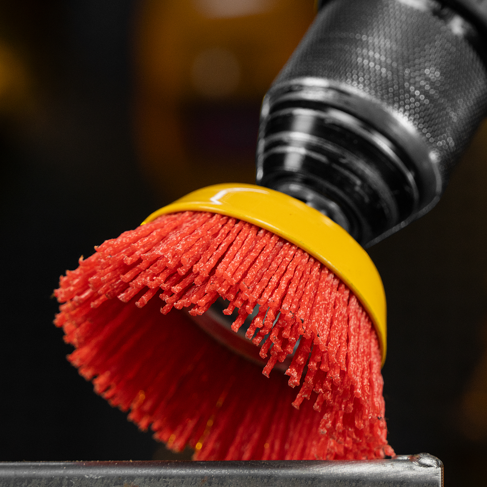 - Высокое качество обработки — в отличие от металлической, нейлоновая щетина не оставляет следов на деревянных поверхностях.