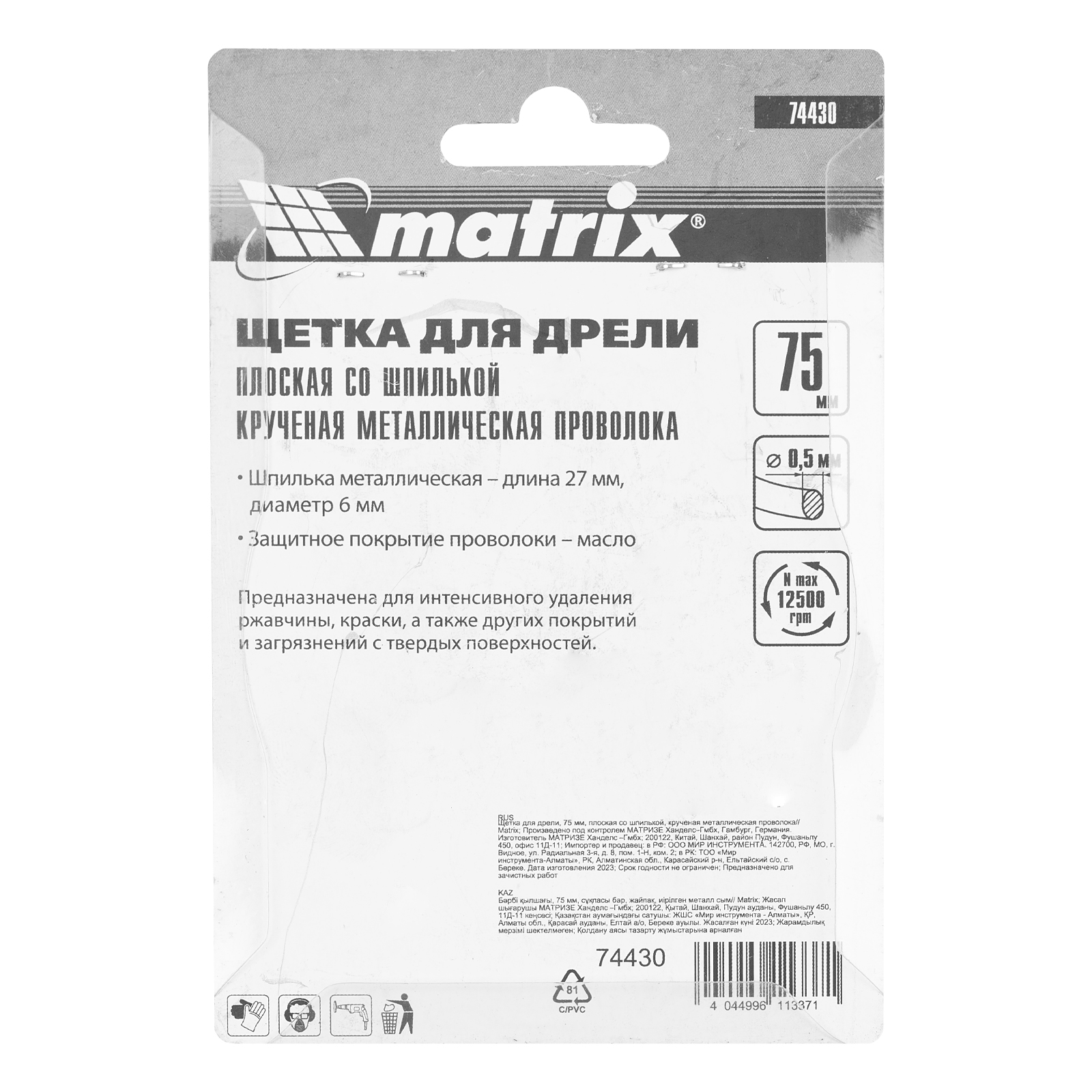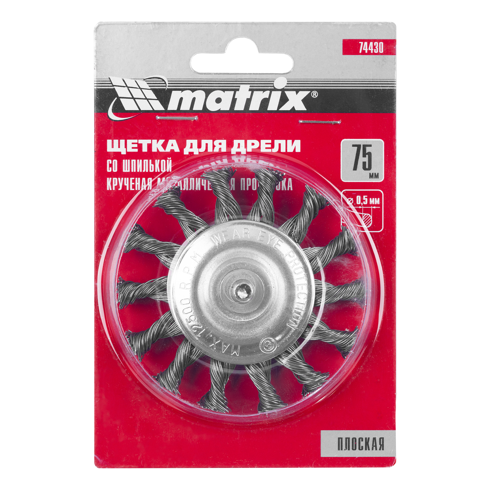 Щетка для дрели, 75 мм, плоская со шпилькой, крученая металлическая проволока Matrix в Краснодаре