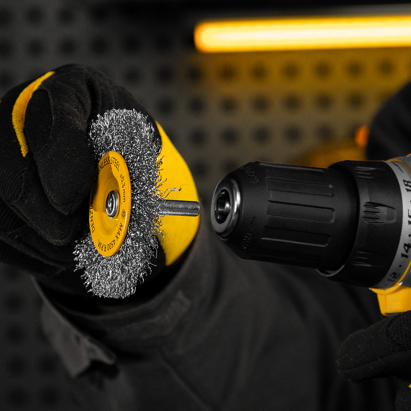- Быстрая подготовка к работе — щетка имеет хвостовик диаметром 6 мм для установки в патрон дрели.
