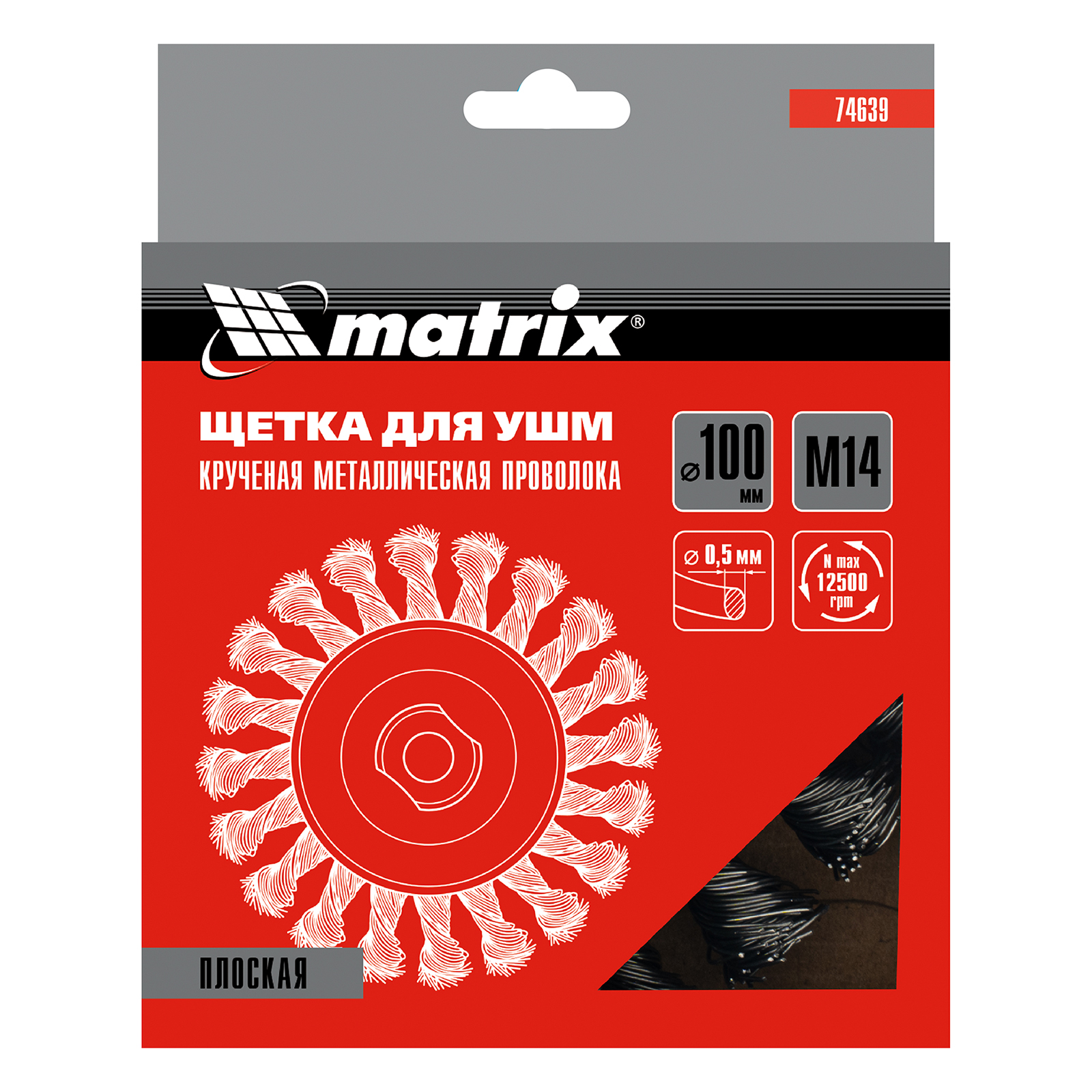 Щетка для УШМ 100 мм, М14, плоская, крученая проволока 0.5 мм Matrix в Краснодаре