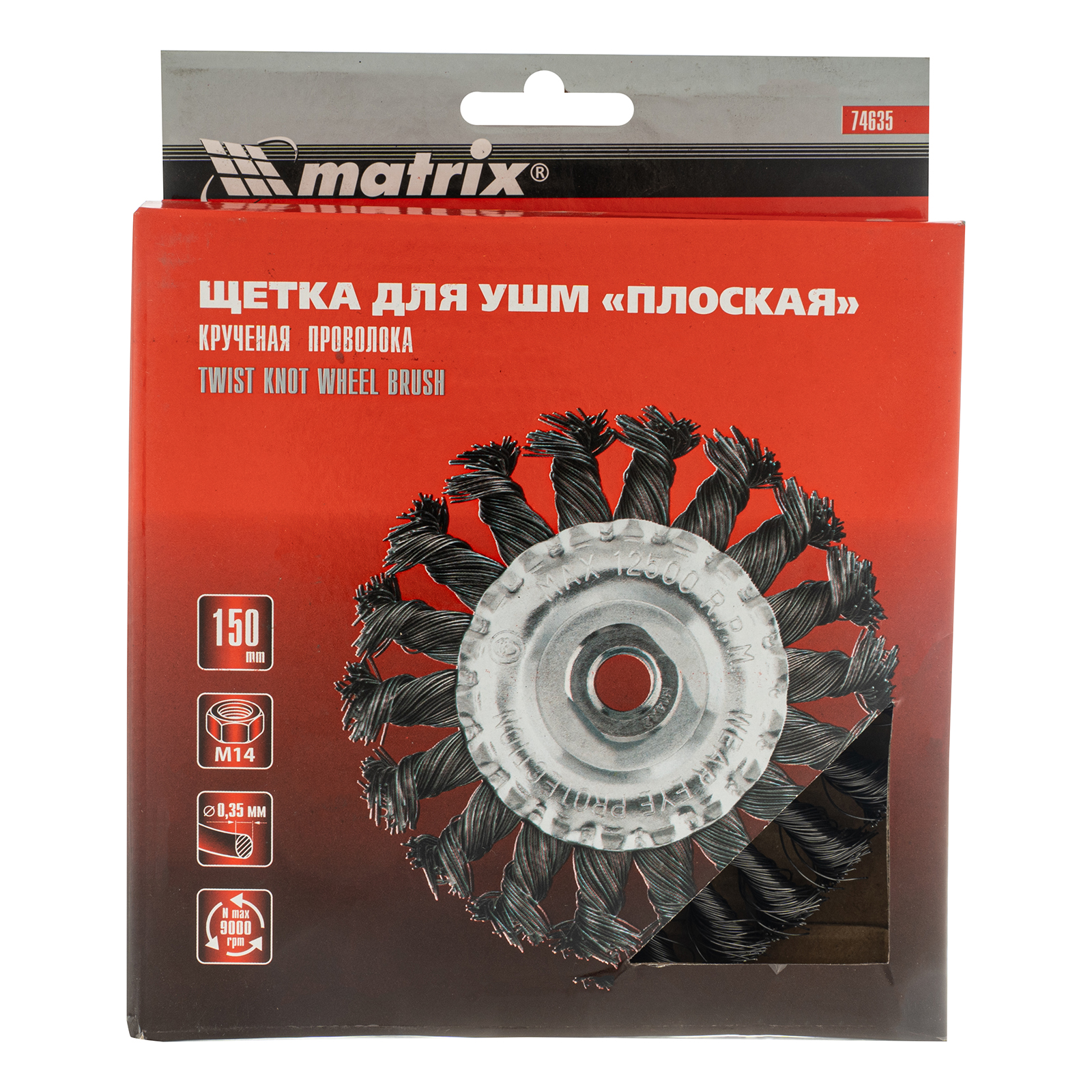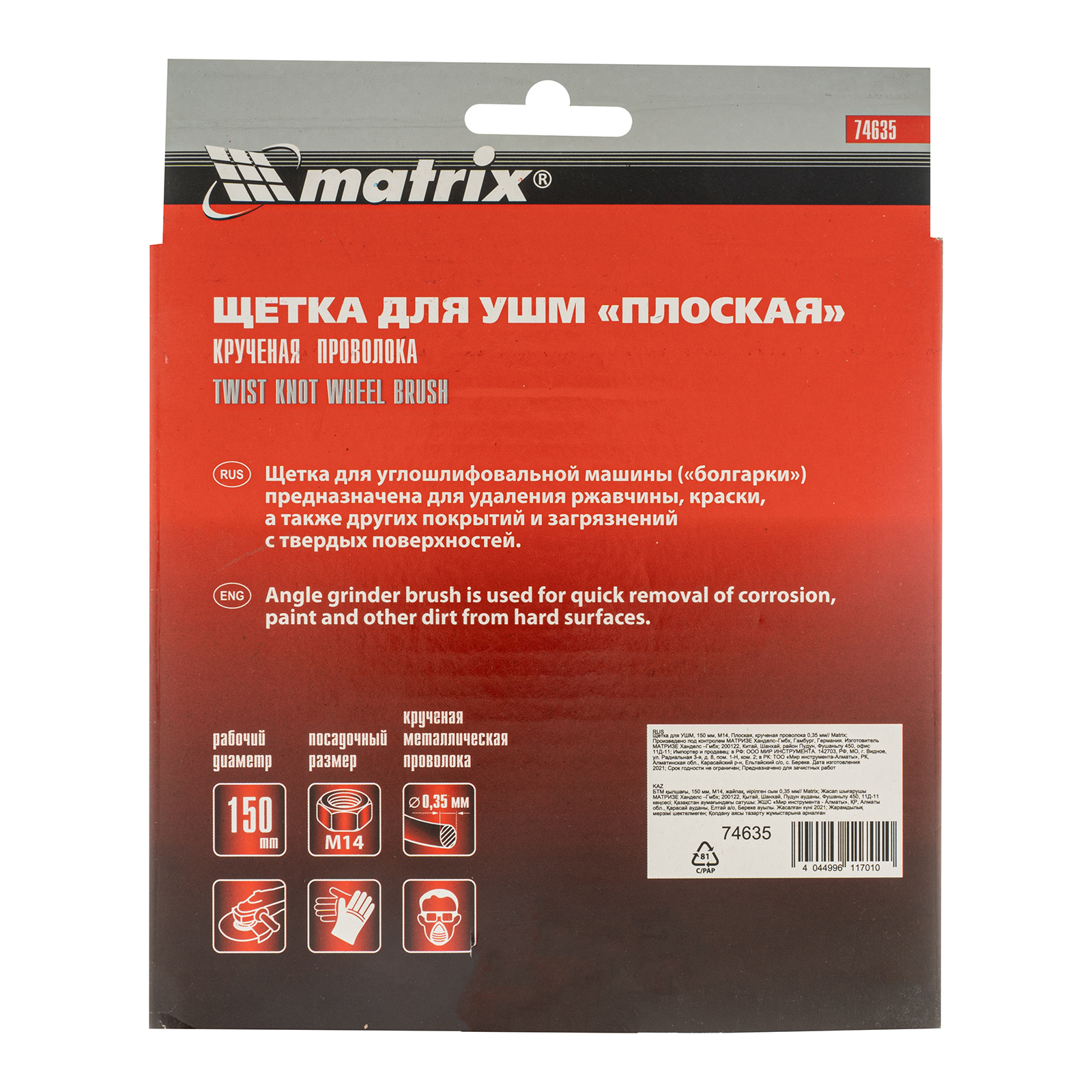 Щетка для УШМ 150 мм, М14, плоская, крученая проволока 0.35 мм Matrix в Краснодаре
