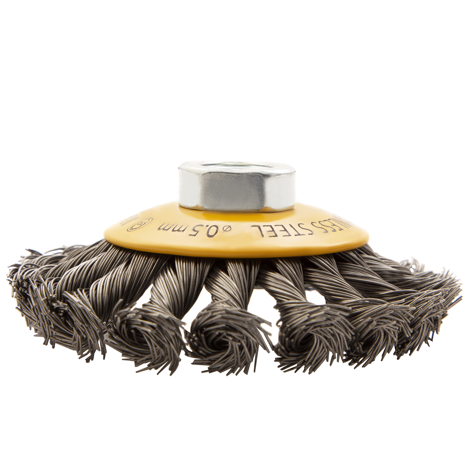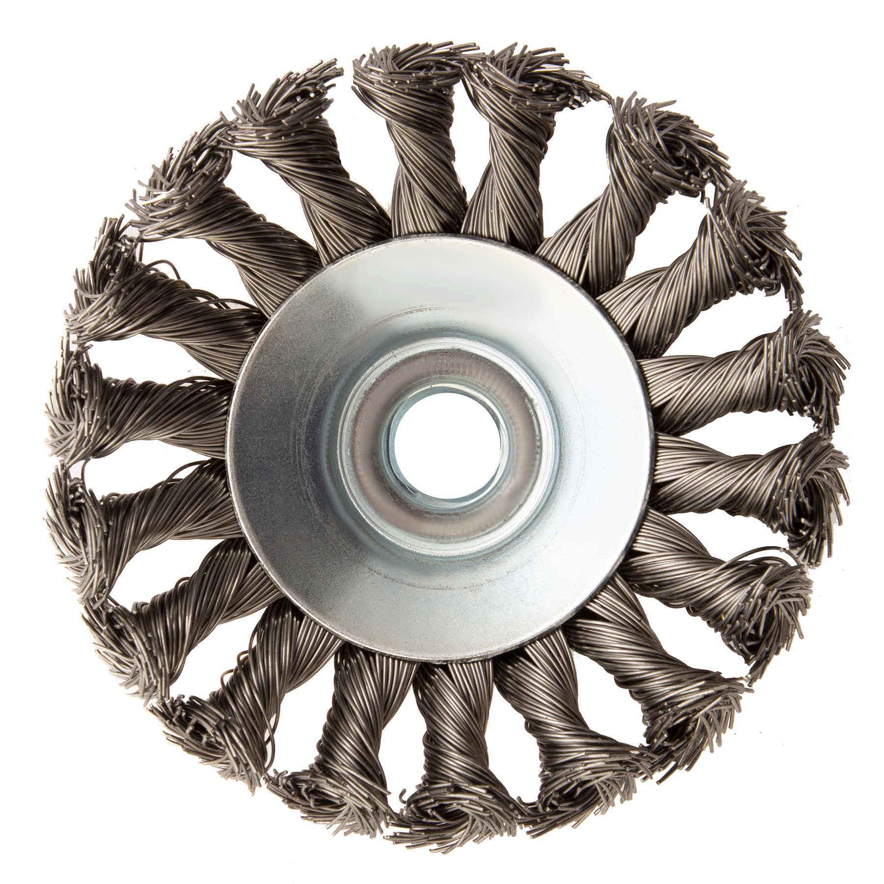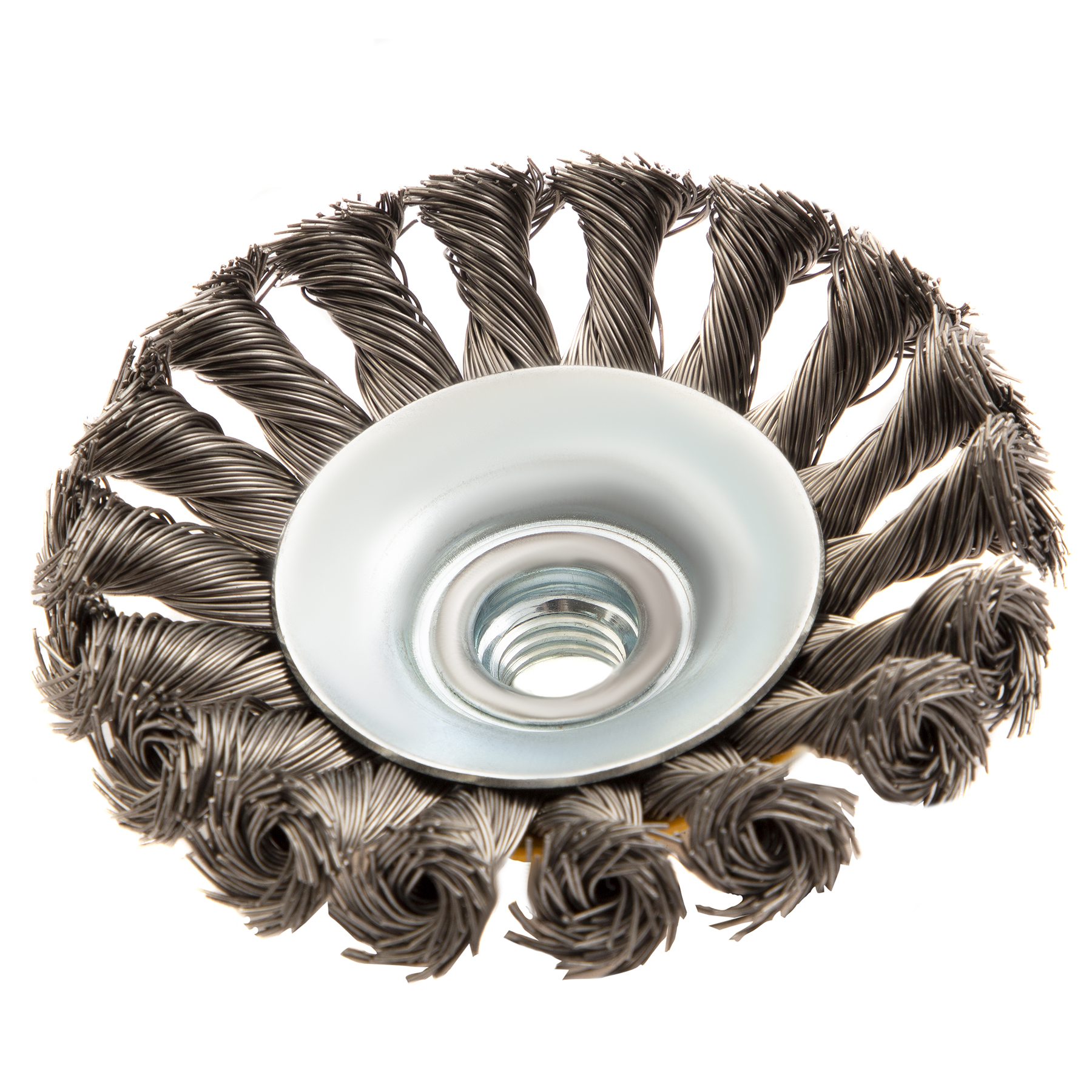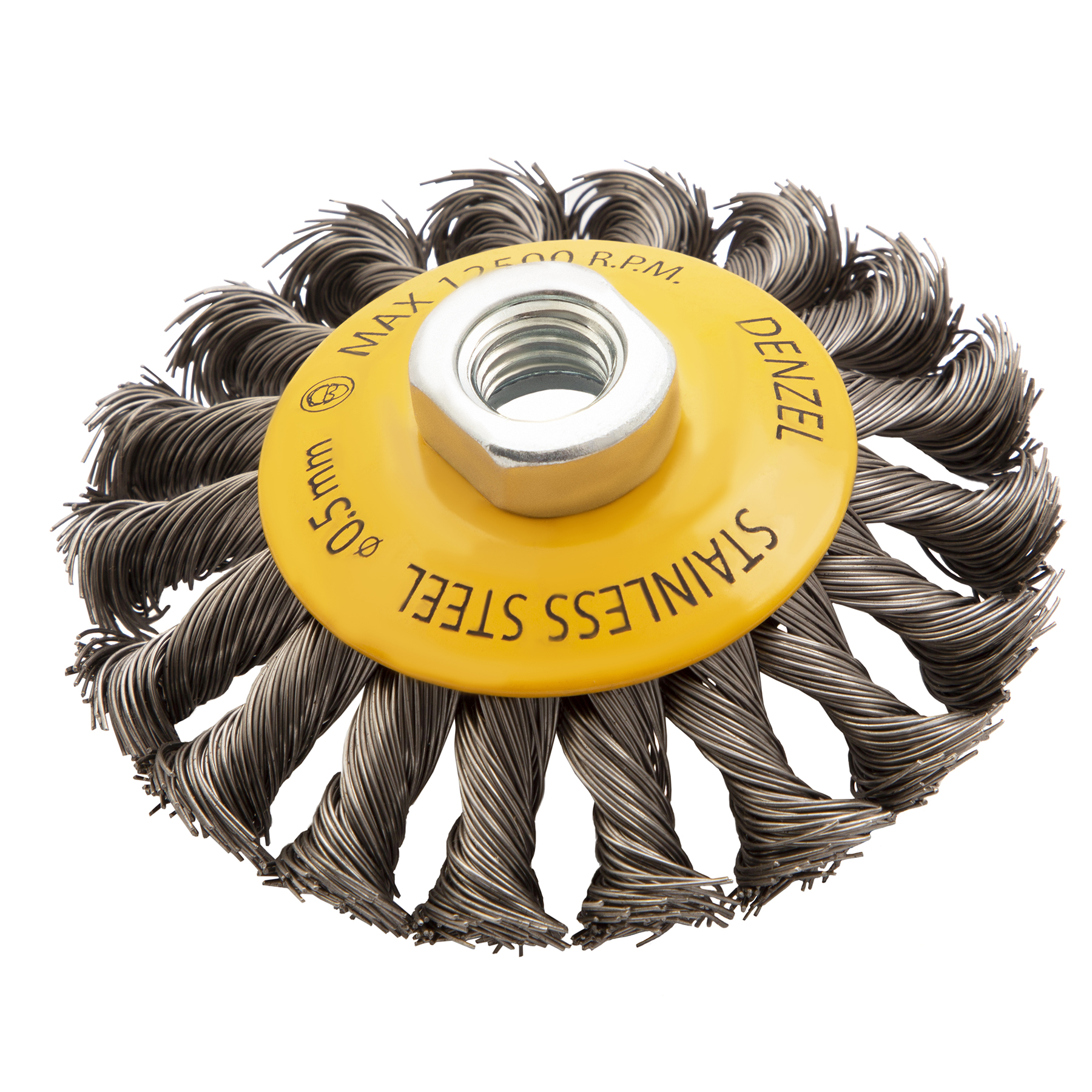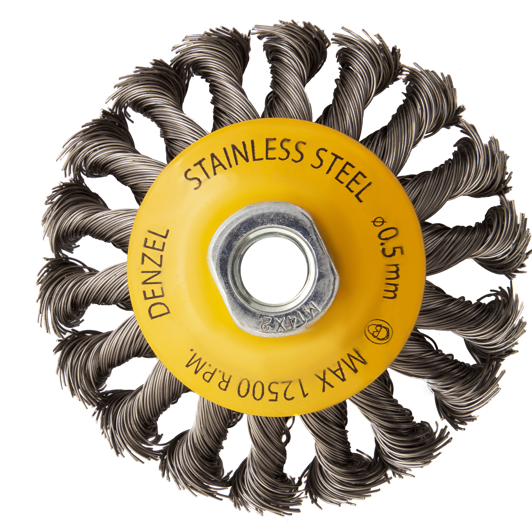 Щетка для УШМ, 100 мм, "Тарелка", крученая нержавеющая проволока 0.5 мм, М14 Denzel в Краснодаре