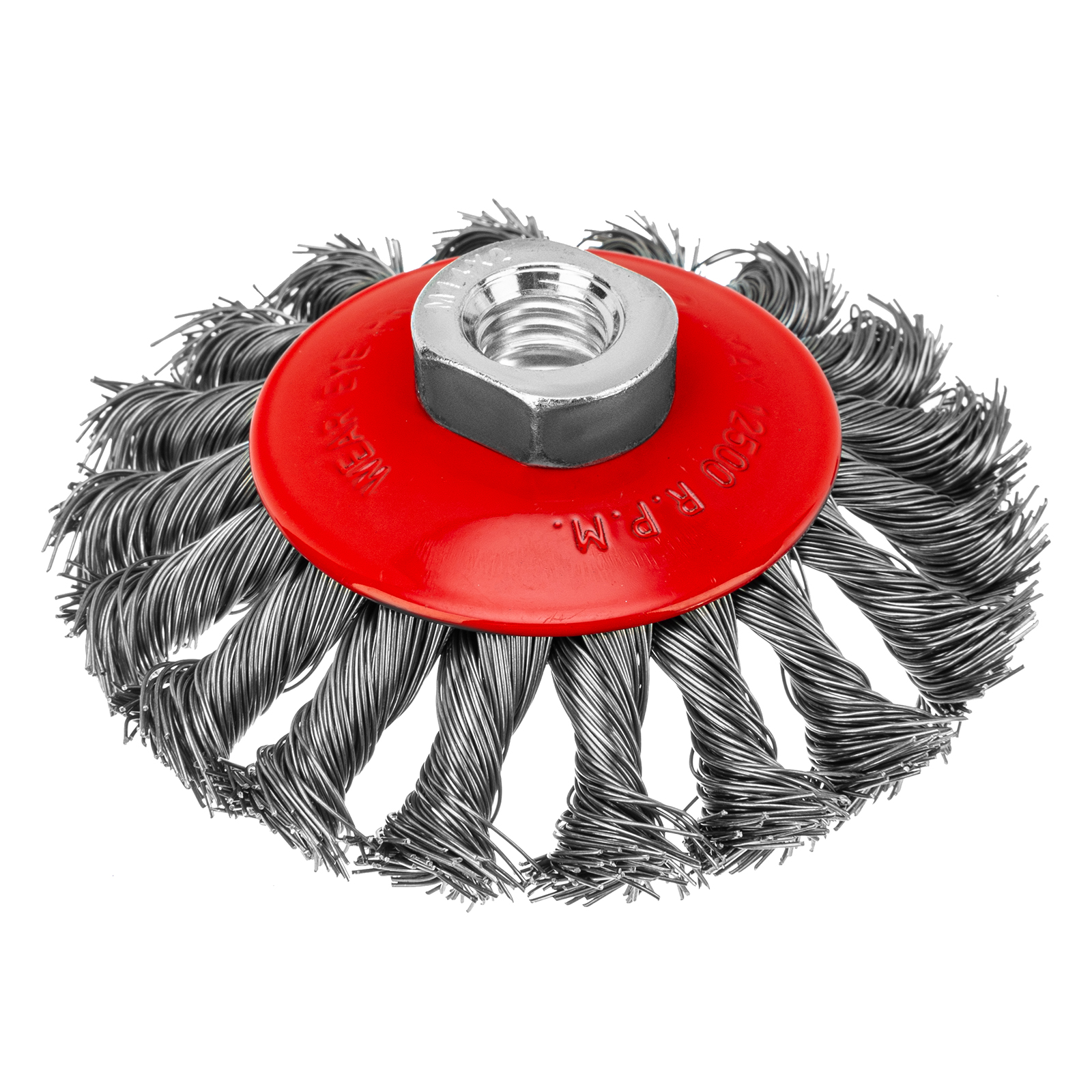 Щетка Matrix «тарелка» 74609 диаметром 100 мм, с щетиной из крученой проволоки толщиной 0,5 мм, устанавливается на УШМ при помощи гайки М14. Выполнена в форме тарелки, за счет чего подходит для грубой (черновой) обработки плоских и угловых поверхностей. Удаляет ржавчину, загрязнения, лакокрасочные покрытия, подходит для зачистки сварных швов. Использование на скорости до 12500 об/мин позволяет продлить срок службы насадки.