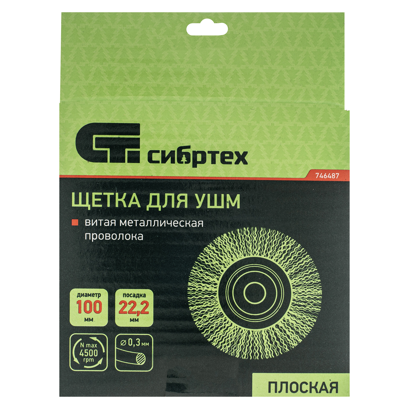 Щетка для УШМ, 100 мм, посадка 22.2 мм, плоская, витая проволока 0.3 мм Сибртех в Краснодаре