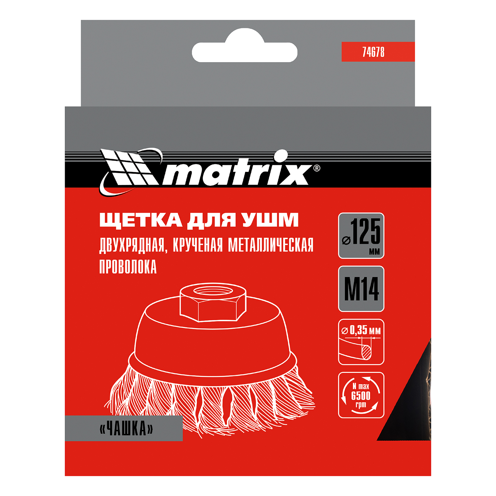 Двухрядная щетка Matrix «Чашка» 74678 диаметром 125 мм, с щетиной из крученой проволоки толщиной 0,35 мм, устанавливается на вал углошлифовальной машины с помощью гайки М14. Рекомендованная максимальная скорость вращения — до 6500 об/мин. Оснастка оптимальна для грубой (черновой) обработки: снятия старого слоя лакокрасочного покрытия и ржавчины, удаления загрязнений, зачистки сварных швов. Эффективно справляется с зачисткой больших поверхностей, подходит для выполнения работ повышенной сложности.
