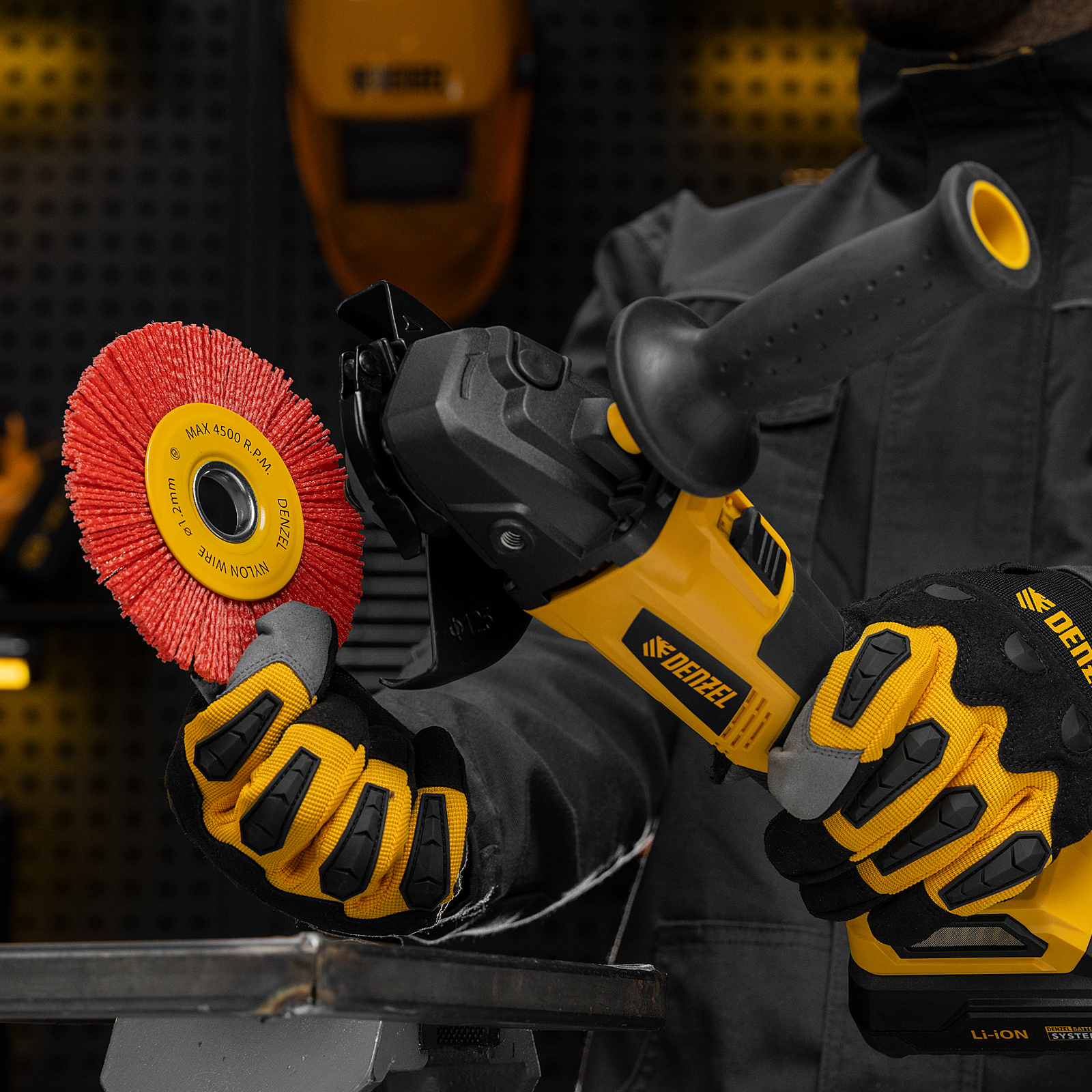 Щетка для УШМ, 125 мм, Плоская, нейлоновая щетина, посадка 22,2 мм Denzel в Краснодаре