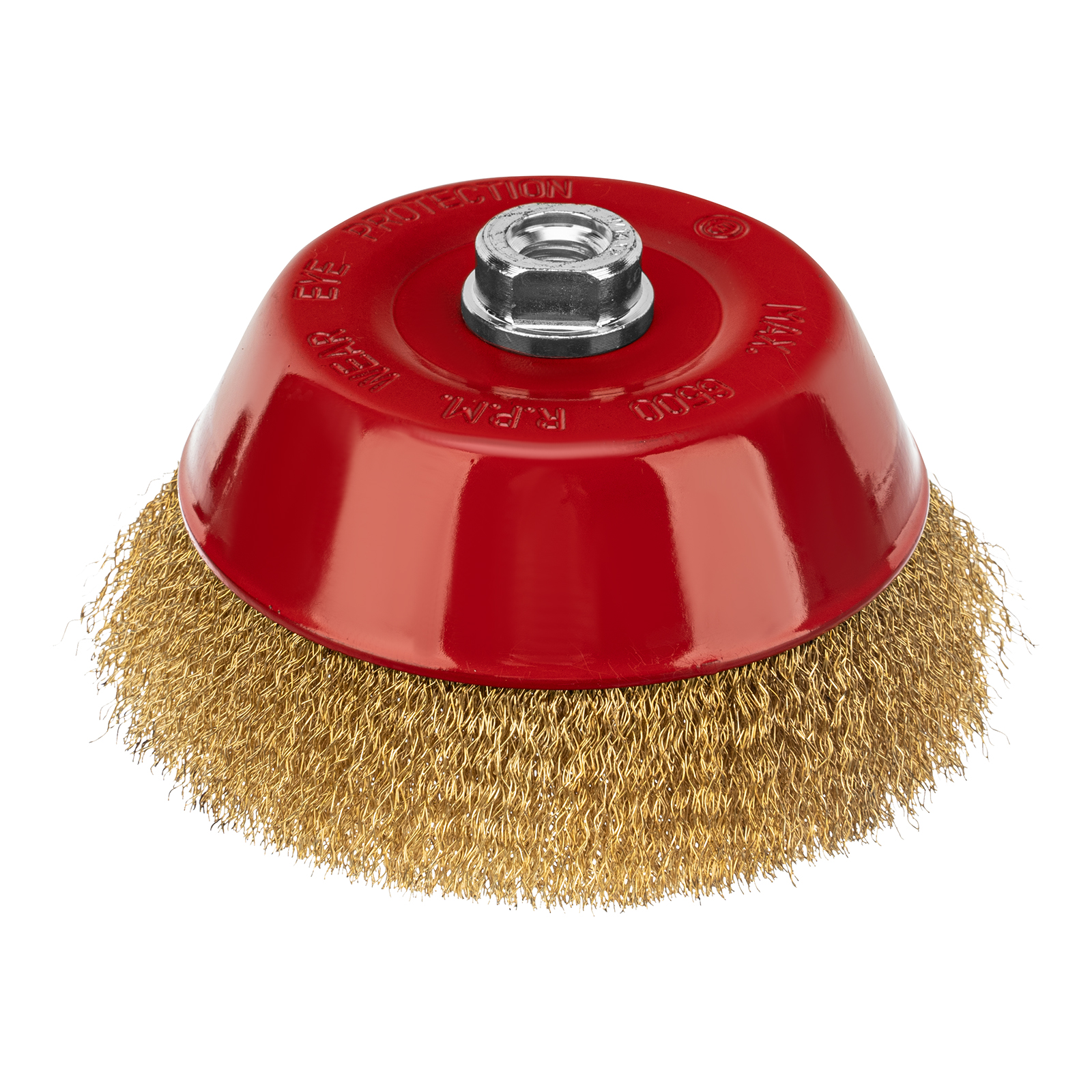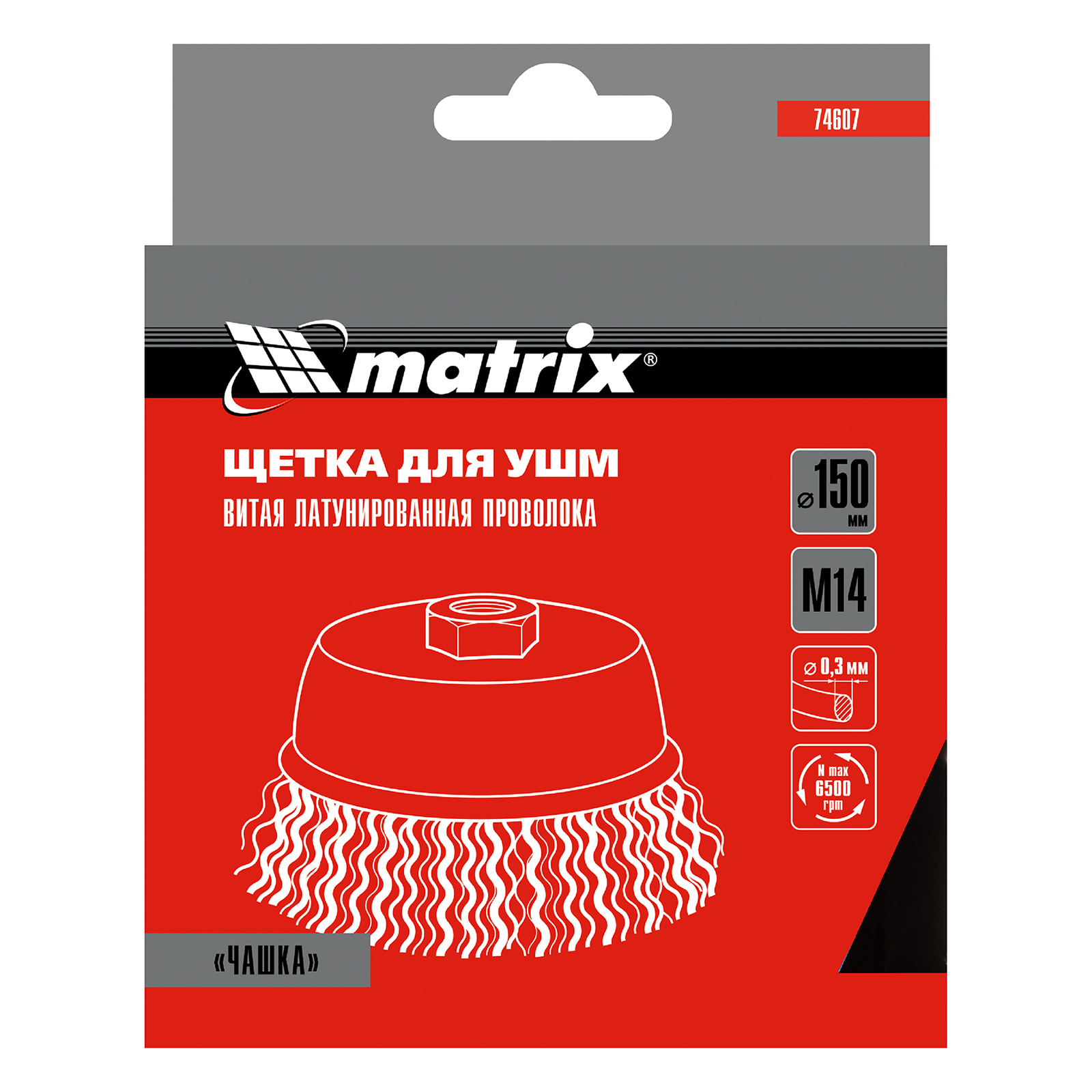 Щетка «чашка» Matrix 74607 диаметром 150 мм, с щетиной из латунированной витой проволоки, устанавливается на вал УШМ с помощью гайки М14. Предназначена для снятия тонкого слоя краски или лака, удаления ржавчины и загрязнений. При рекомендованной скорости вращения 4500 об/мин щеткой можно быстро обрабатывать участки большой площади.
