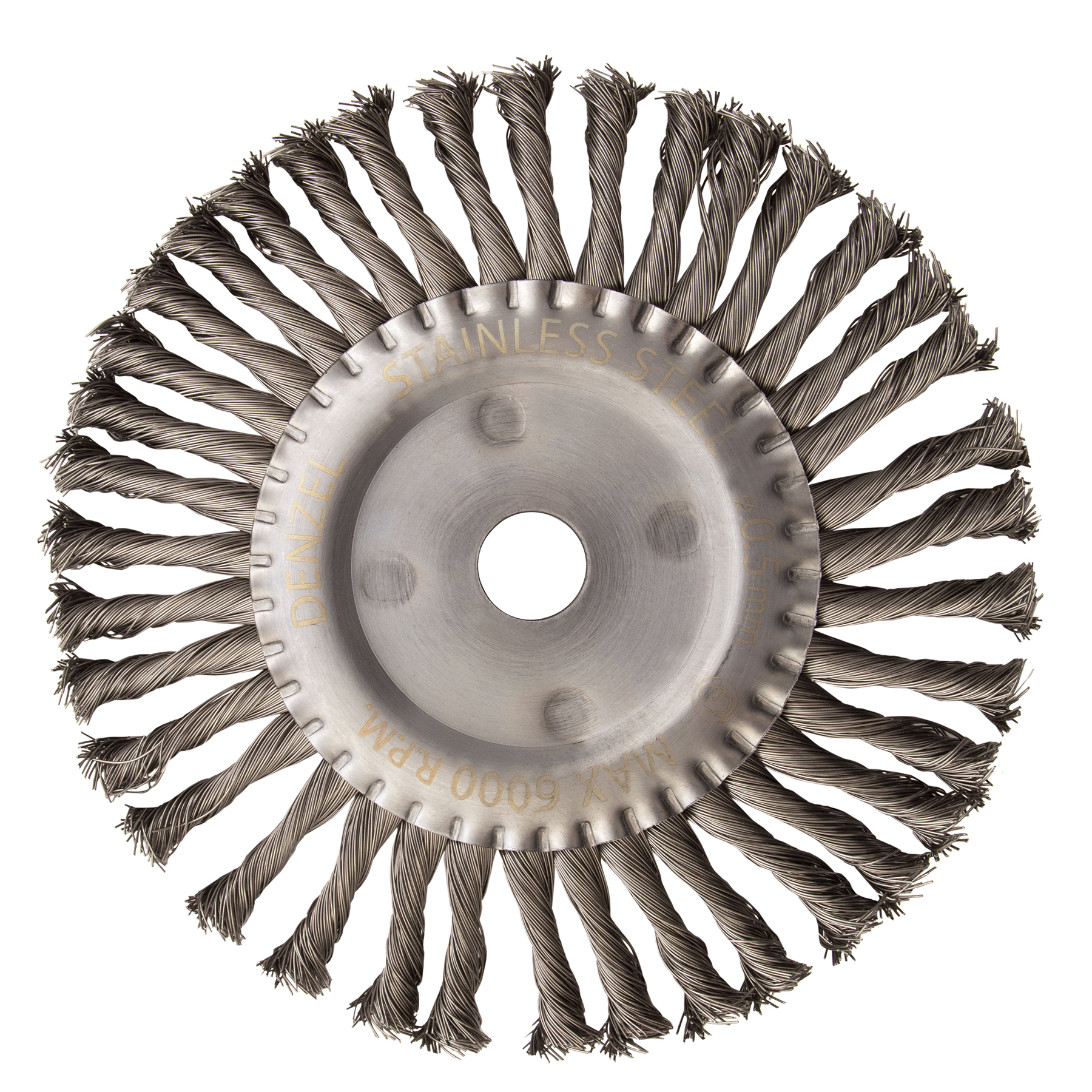 Щетка для УШМ, 200 мм, "Плоская", крученая нержавеющая проволока 0.5 мм, посадка 22.2 мм Denzel в Краснодаре