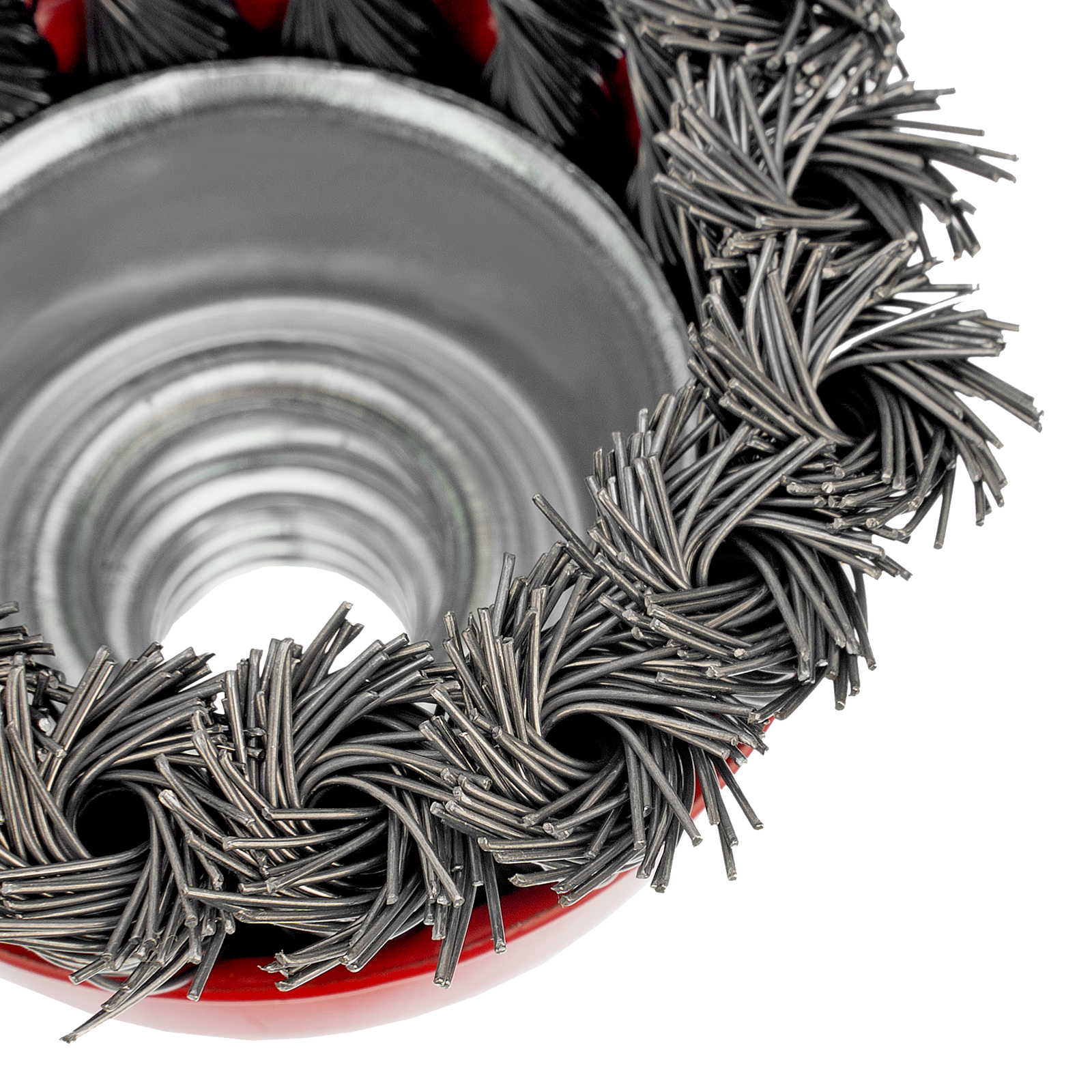 - Прочность и долговечность — щетина из крученой стальной проволоки выдерживает значительные нагрузки.