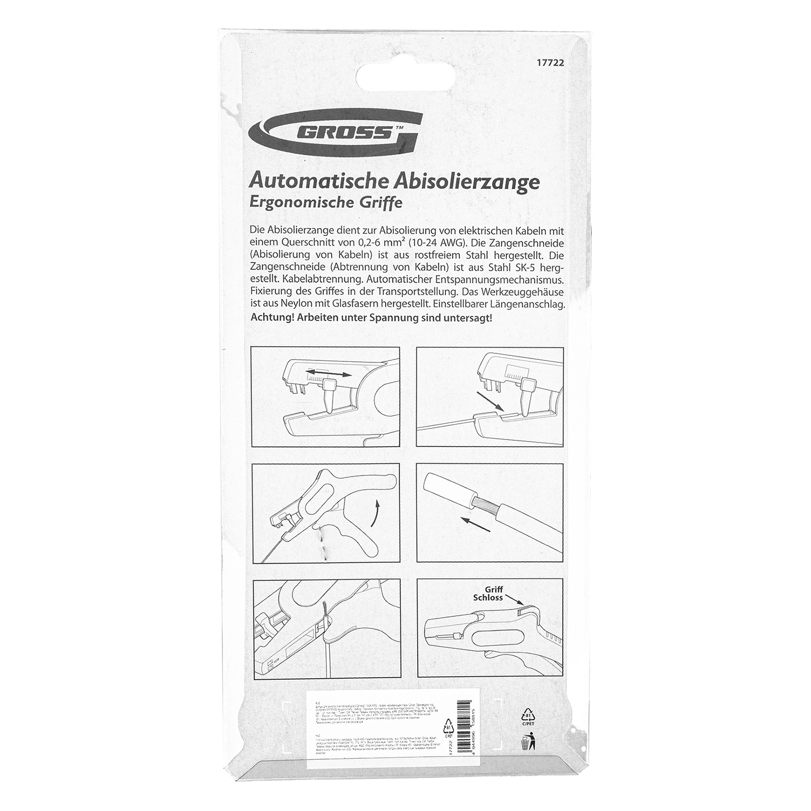 Щипцы для зачистки электропроводов 0.2-6 мм2 (10-24 AWG) лезвие: нержавеющая сталь Gross в Краснодаре