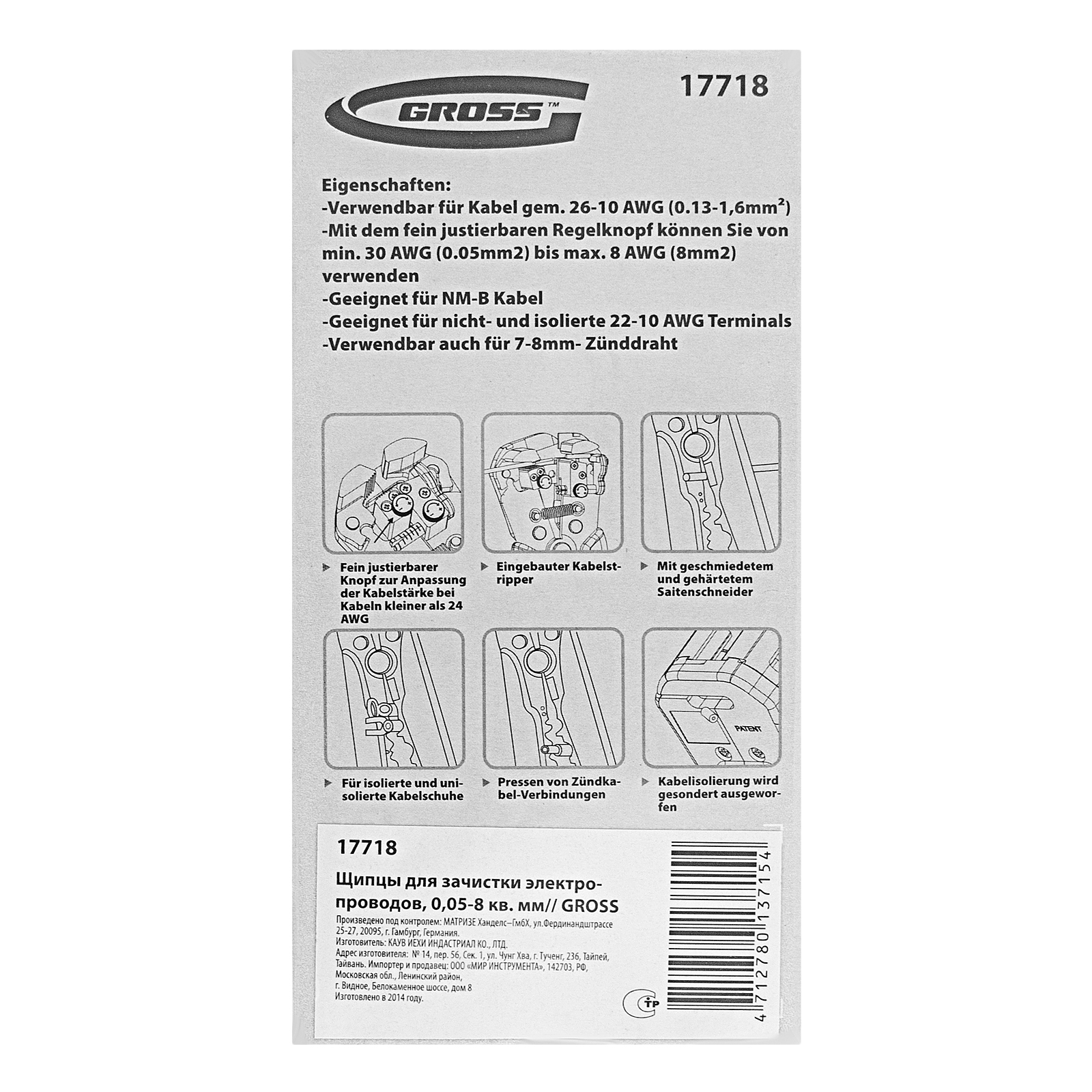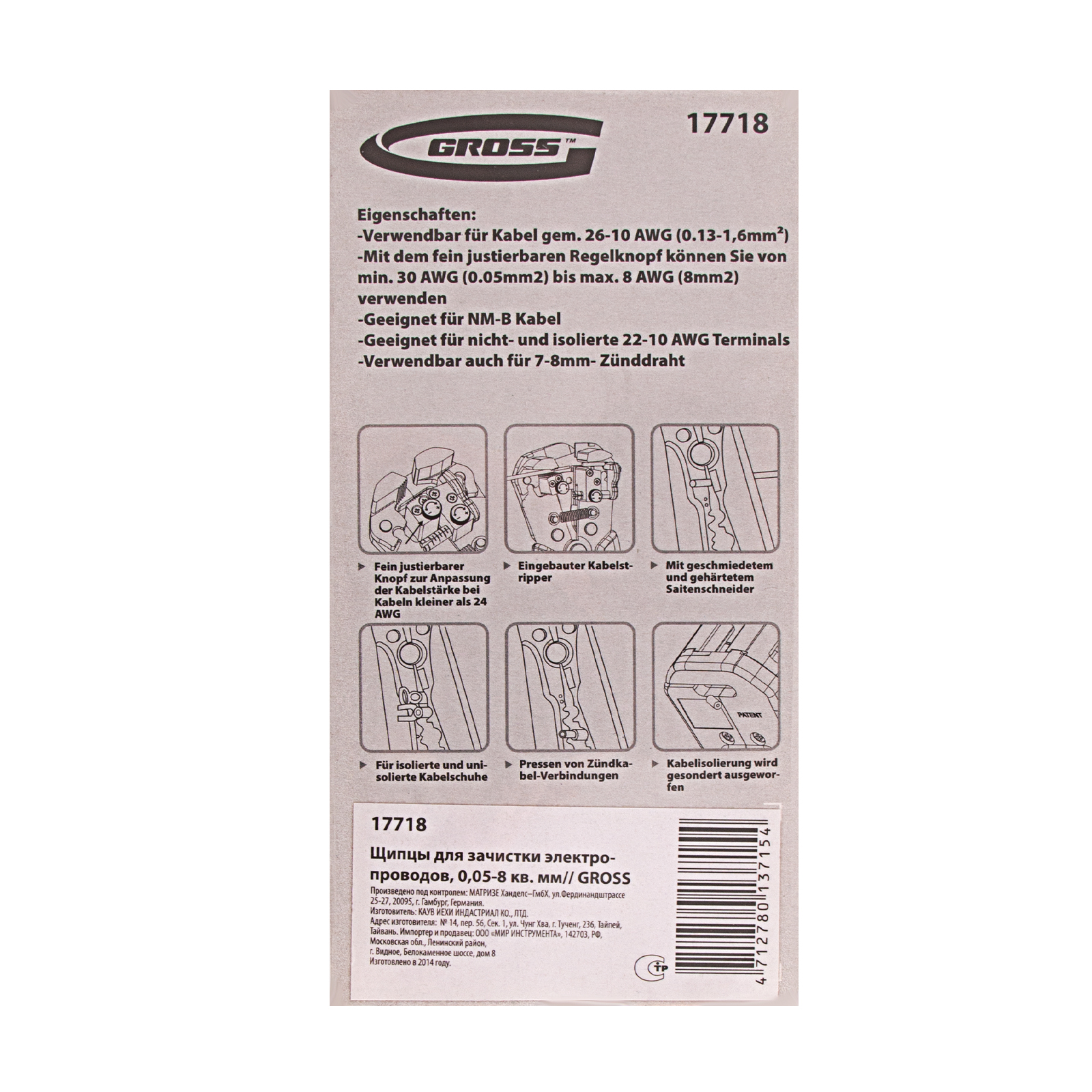 Щипцы для зачистки электропроводов, 0.05-8 кв.мм Gross в Краснодаре