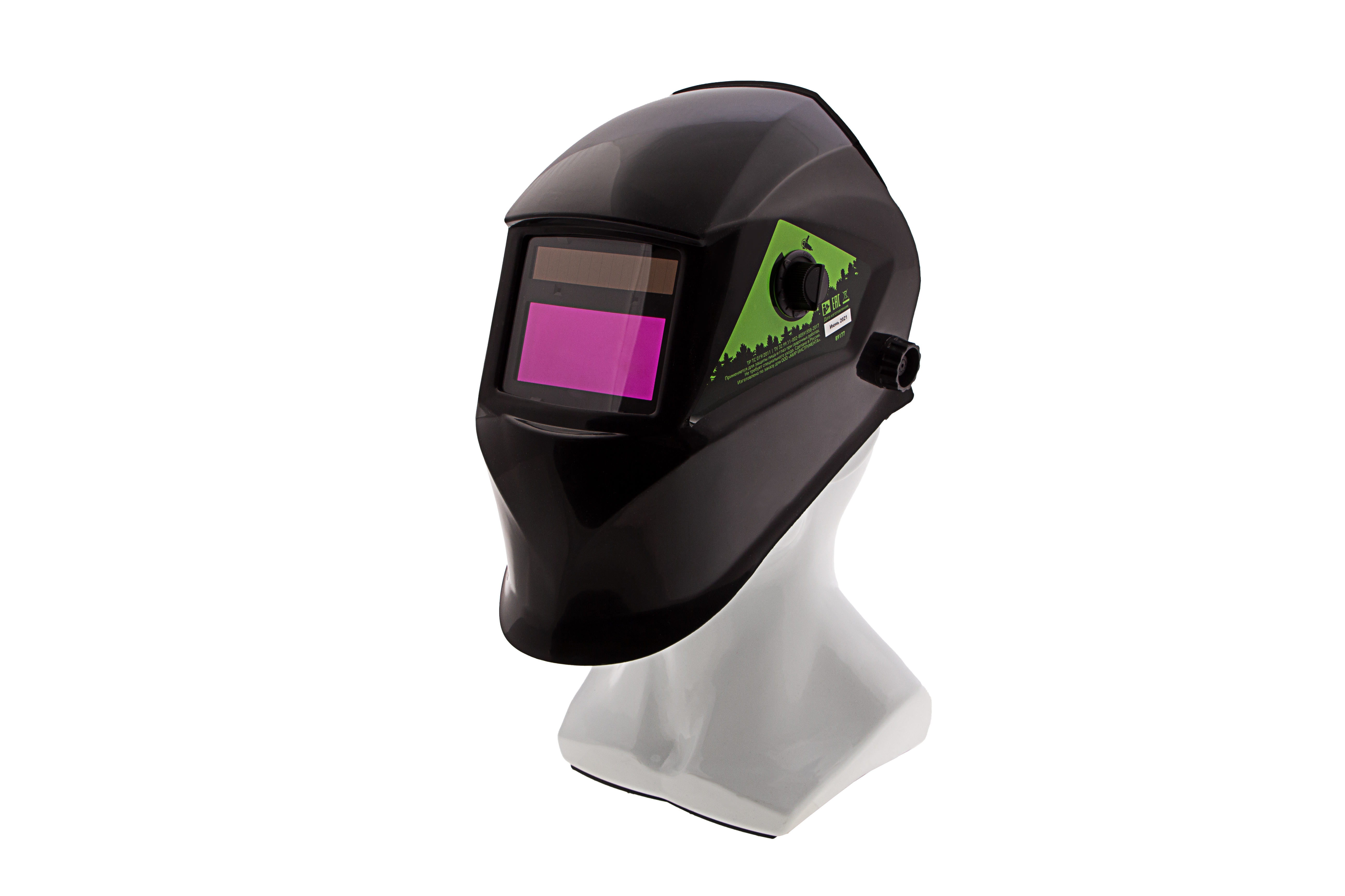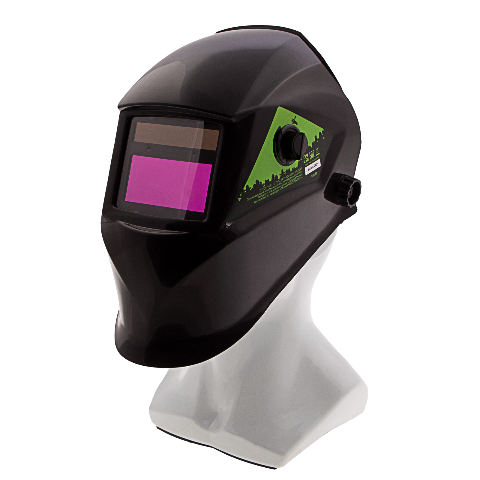 Защитный лицевой щиток, или маска сварщика, Сибртех Ф5 89177 с автозатемнением, упакованный в картонную коробку, закрывает глаза, лицо и шею мастера от света дуги, искр, ультрафиолета и горячих брызг. Предохраняет также от ожогов вследствие высоких температур во время сварочных работ.
