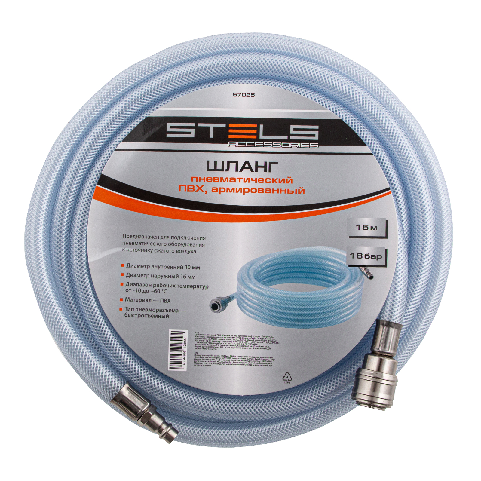 Шланг пневматический ПВХ, 10 x 16 мм, 18 бар, армированный, прозрачный, быстросъемное соединение, 15 м Stels в Краснодаре