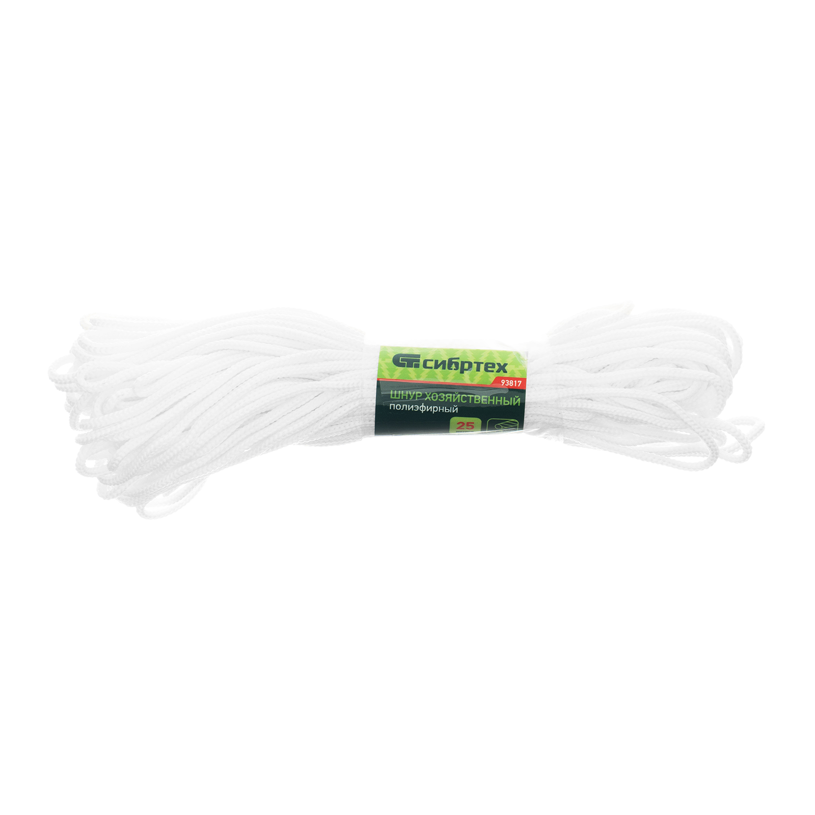Хозяйственный полиэфирный шнур Сибртех 93817 диаметром 3 мм и длиной 25 м используется для упаковки и закрепления грузов, связывания предметов, сушки белья и решения других профессиональных и бытовых задач. Обладает высокой прочностью — максимальная разрывная нагрузка составляет 110 кгс. Будет полезен дома, на даче, а также в походе, на охоте или рыбалке.