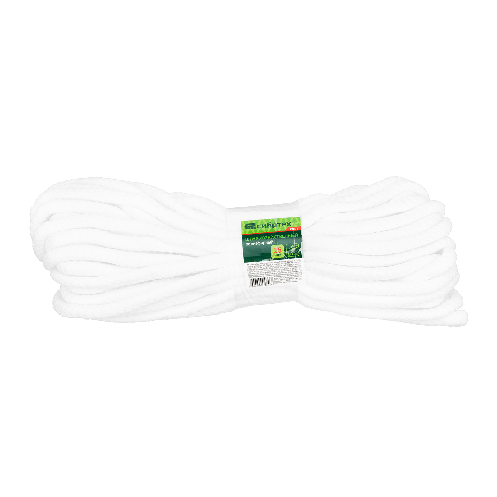 Шнур хозяйственный, D 9 мм, L 25 м, полиэфирный Сибртех в Краснодаре