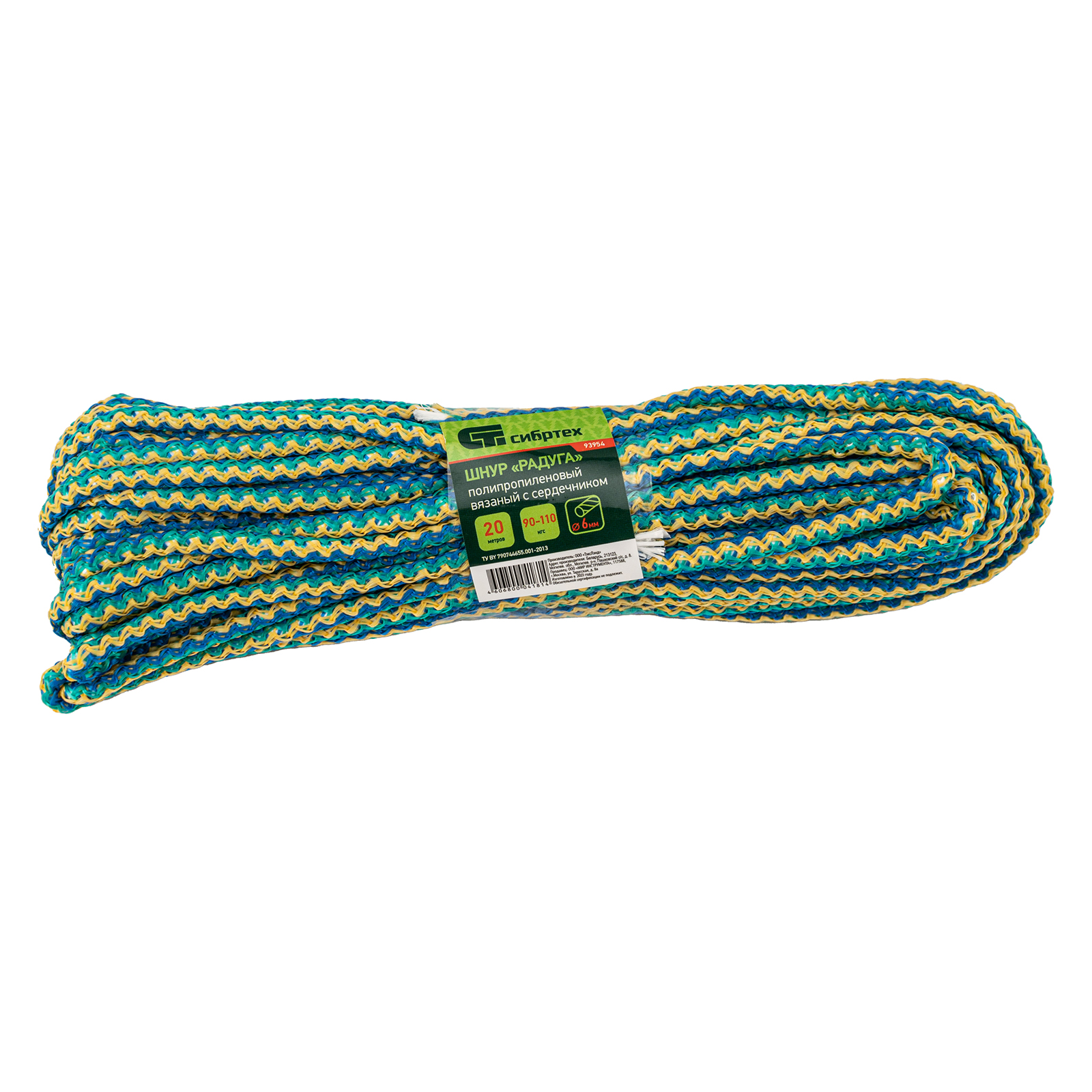Шнур вязаный полипропиленовый с серд."Радуга", 6 мм, L 20 м, Сибртех в Краснодаре