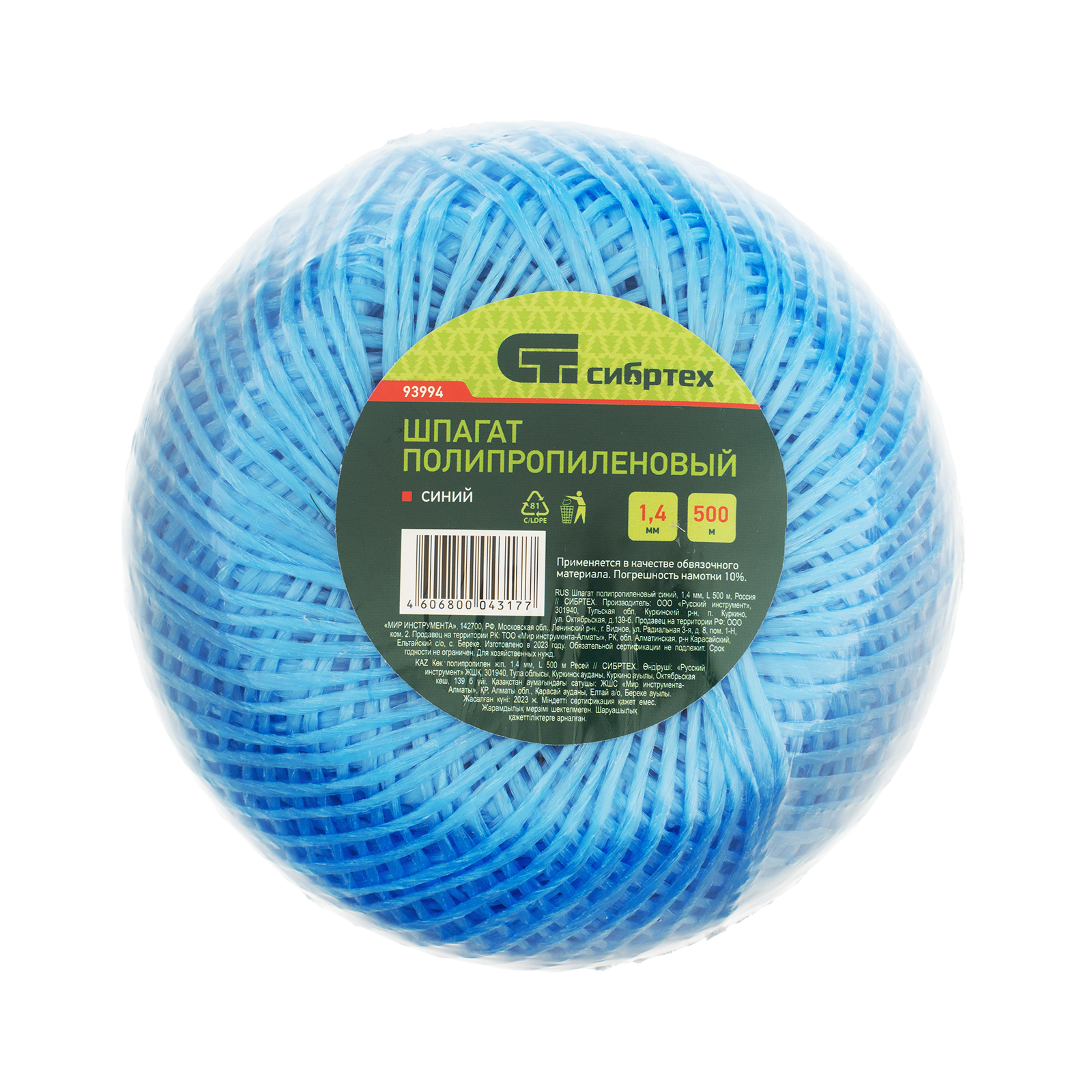 Шпагат полипропиленовый синий, 1.4 мм, L 500 м, Сибртех в Краснодаре