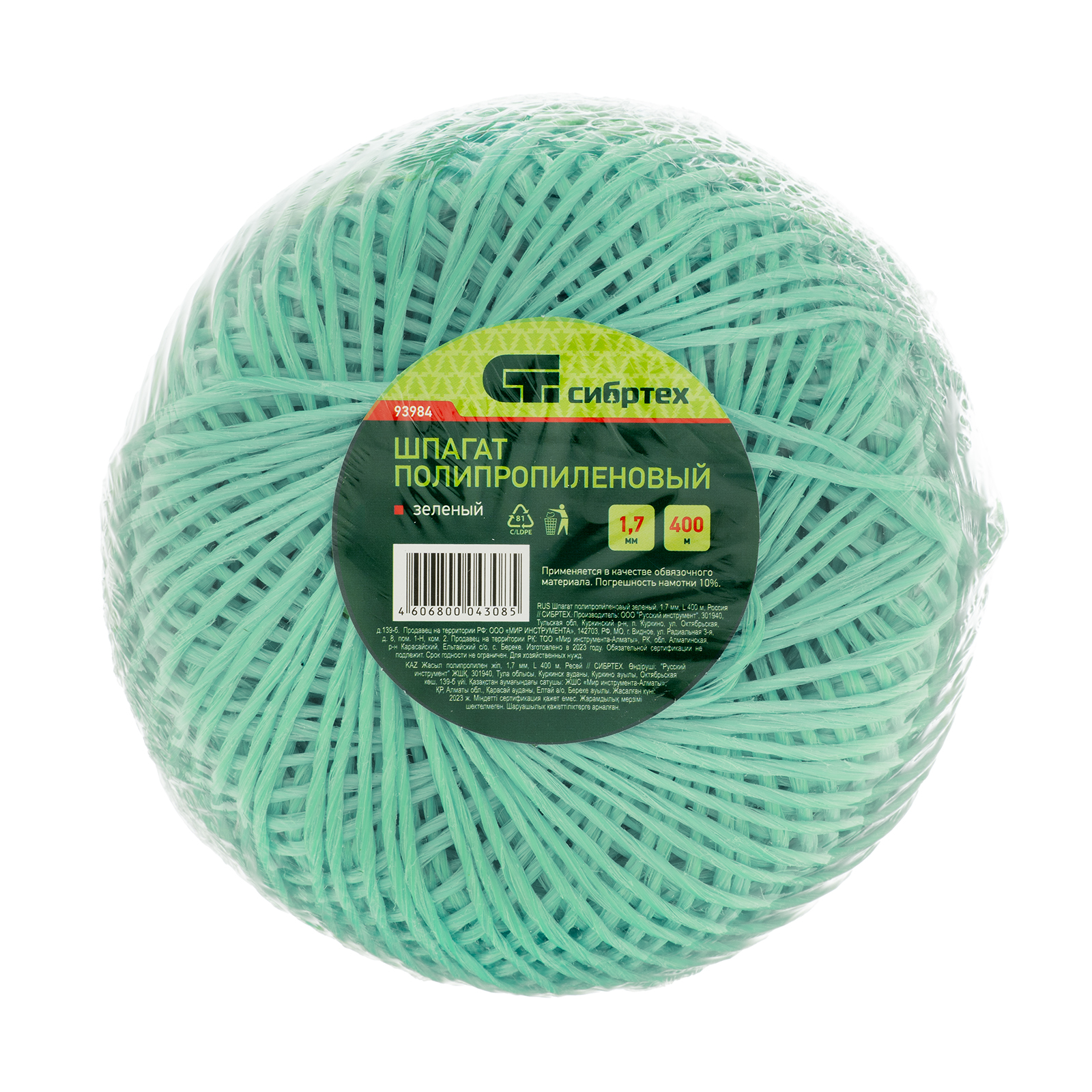 Шпагат полипропиленовый зеленый, 1.7 мм, L 400 м, Сибртех в Краснодаре