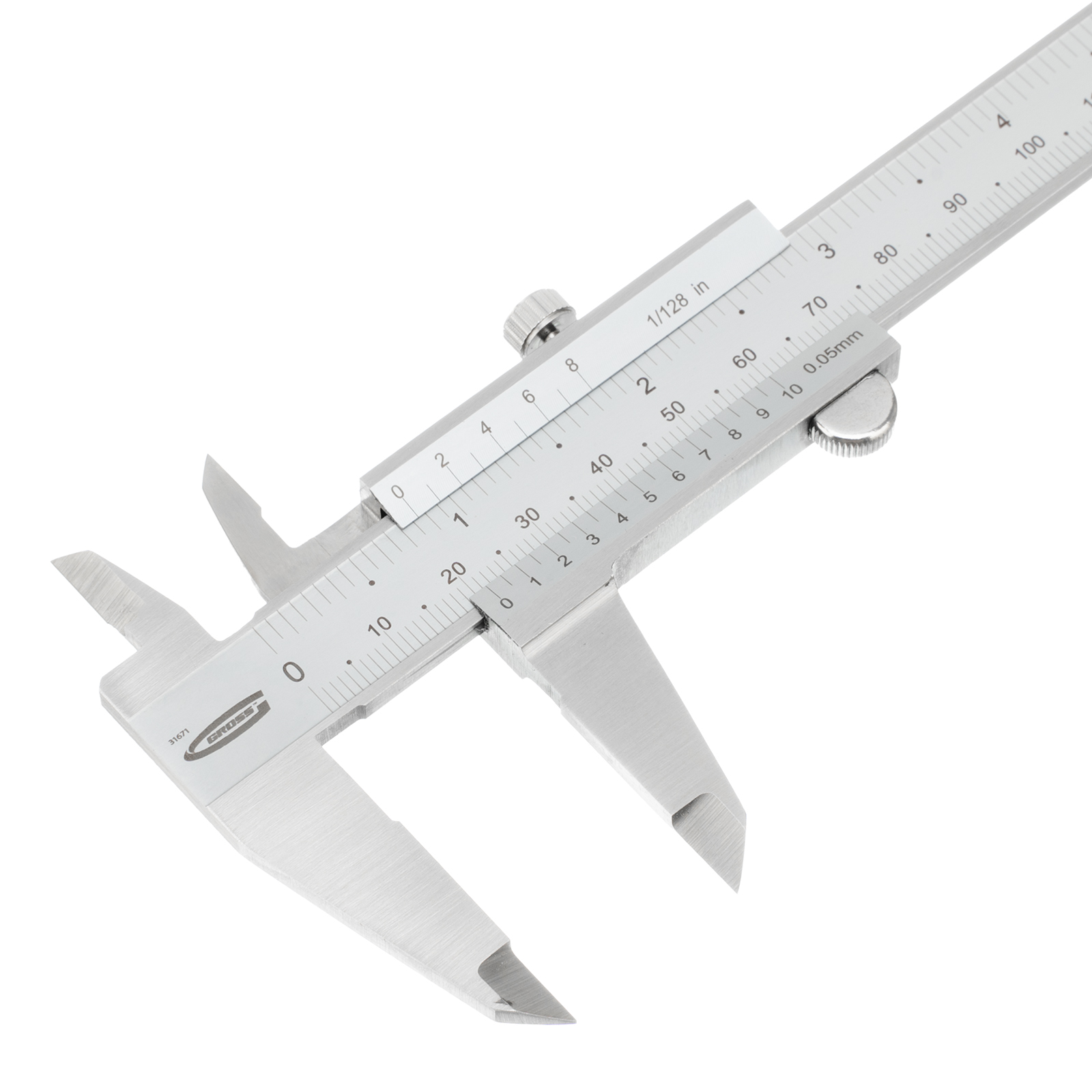 Штангенциркуль Gross 31671 из нержавеющей стали, с глубиномером, предназначен для измерения внутренних и наружных размеров деталей и заготовок в диапазоне 0-150 мм. Значение отсчета по нониусу составляет 0,05 мм. Погрешность находится в пределах ±0,02 мм при измерении до 100 мм, и ±0,03 мм — свыше 100 мм. Инструмент имеет губки двух видов для облегчения замеров внутри и снаружи предметов. Штангенциркуль будет полезен на производственном предприятии, в слесарной и столярной мастерской, автосервисе, а также пригодится в быту.
