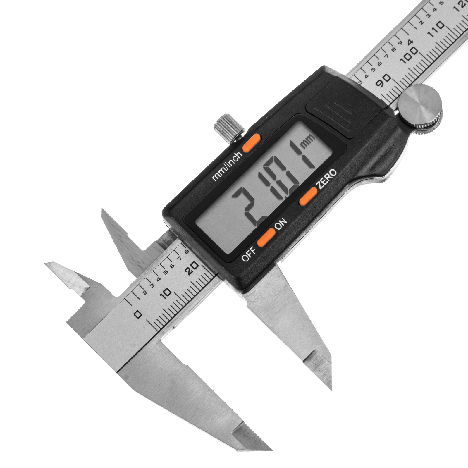 Электронный штангенциркуль Denzel 31613 со шкалой длиной 150 мм и глубиномером позволяет определять внутренние и внешние размеры различных деталей. Цена деления составляет 0,01 мм. Штангенциркуль позволяет получать результаты высокой точности: погрешность составляет ±0,02 мм при измерении размеров до 100 мм, и ±0,03 мм — до 150 мм. Двустороннее положение губок облегчает проведение работ. Инструмент пригодится на производстве, в мастерской, гараже, а также будет полезен в быту.