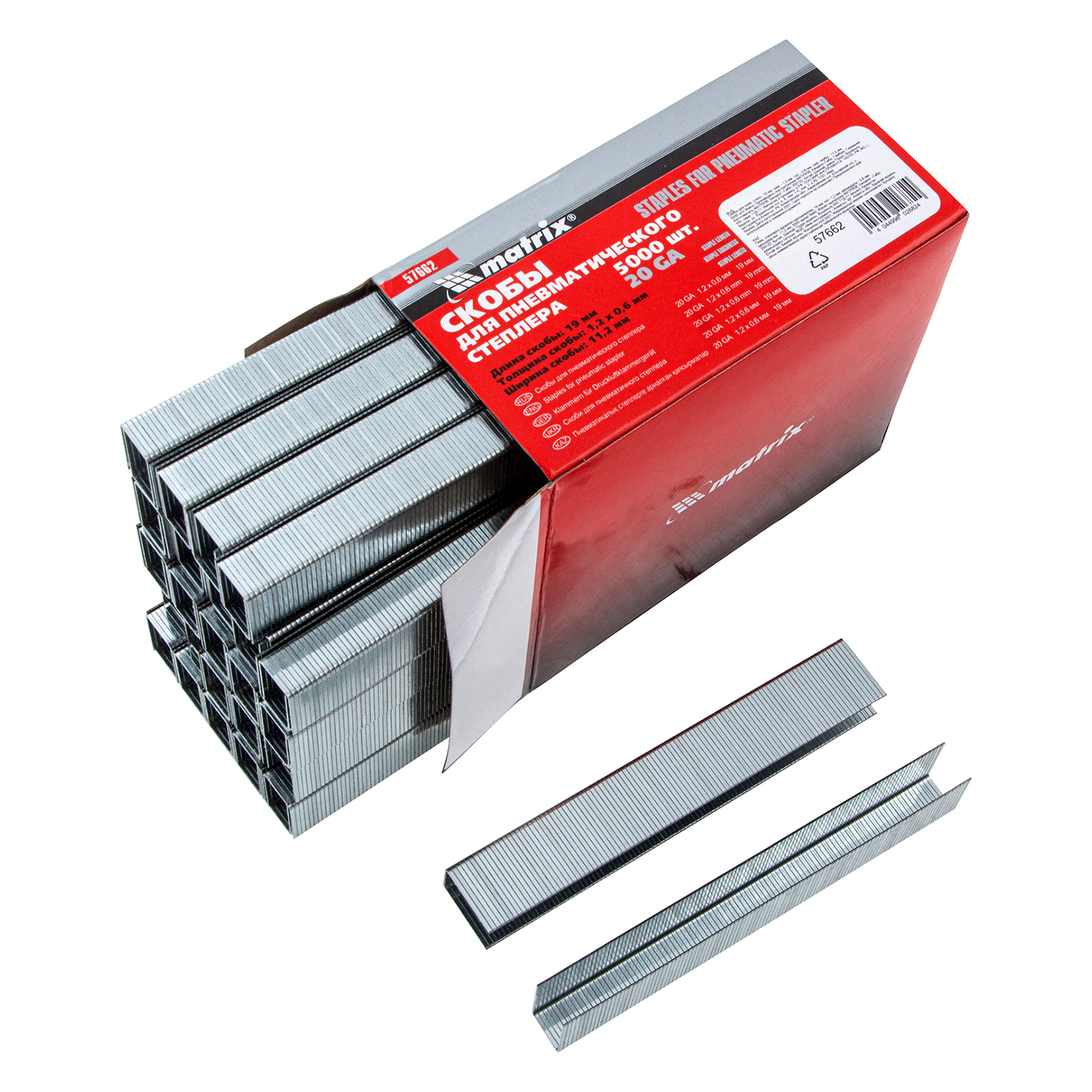 Скобы для пневматического степлера, 19 мм, ширина 1.2 мм, толщина 0.6 мм, ширина скобы 11.2 мм, 5000 шт Matrix в Краснодаре