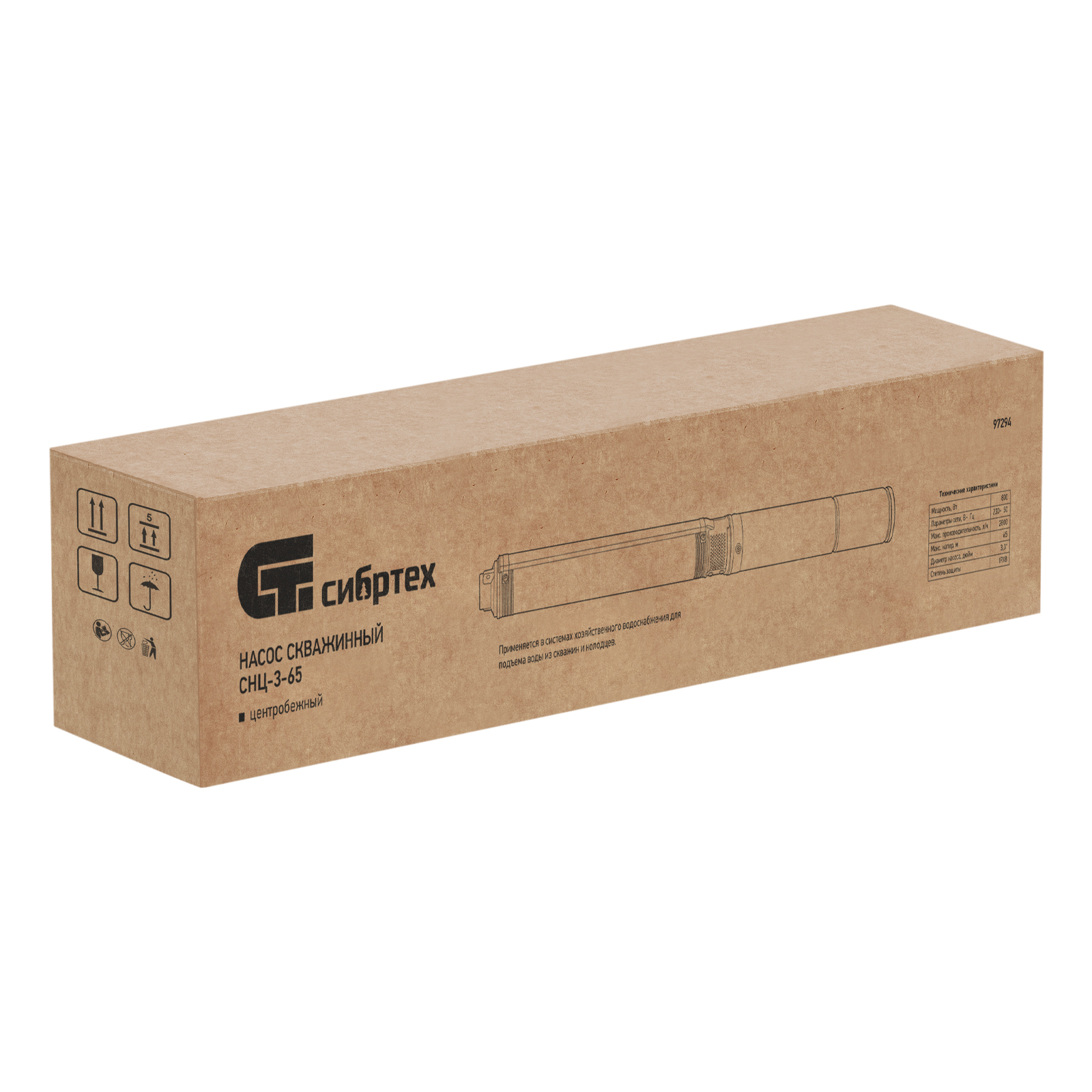 Скважинный насос CНЦ-3-65, центробежный, диаметр 3", 800 Вт, 2800 л/ч, напор 65 м Сибртех в Краснодаре
