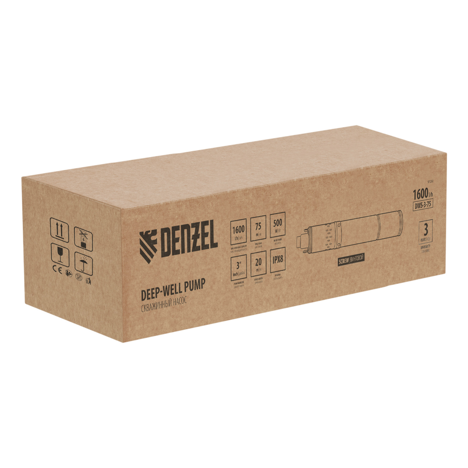 Скважинный насос DWS-3-75, винтовой, диаметр 3", 500 Вт, 1600 л/ч, напор 75 м Denzel в Краснодаре