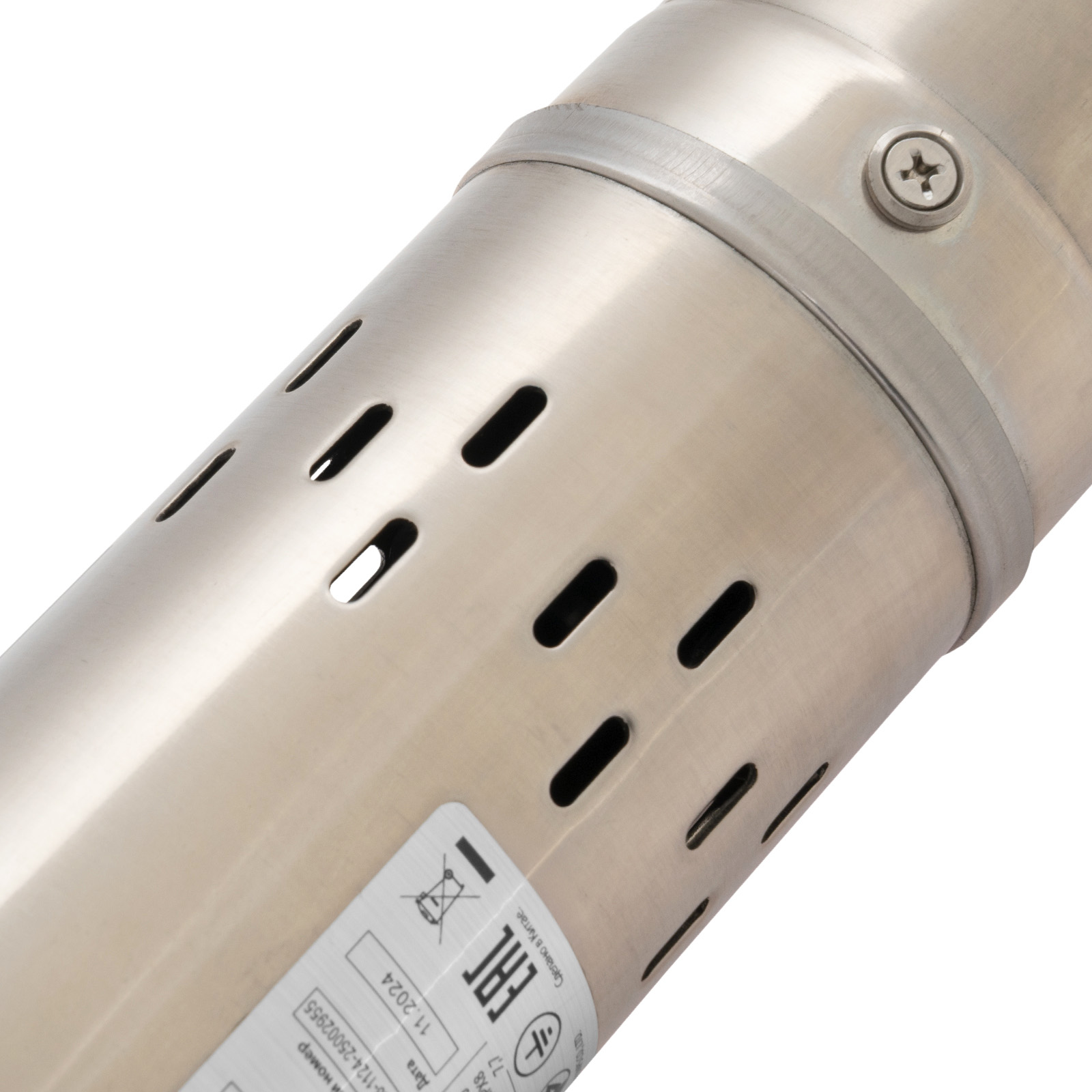 - Небольшие габариты и вес 7,7 кг — насос можно использовать в узких скважинах диаметром от 80 мм.