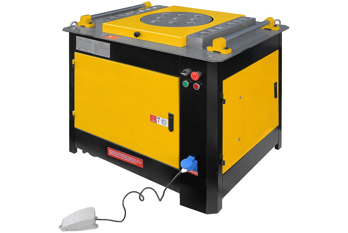 Станки для гибки арматуры – высокотехнологичное оборудование, которое используется для холодной гибки арматурной стали, сортового проката на строительных площадках, под навесом, на производствах железобетонных и металлических конструкций, таких как дорожные плиты, блоки или панели перекрытий, а также в производственных цехах. Помимо этого, гибщики востребованы непосредственно в строительстве – например, при создании фундаментов будущих зданий. Благодаря использованию гибщиков арматуры удается существенно сократить время производства железобетонных изделий и конструкций, а также снизить трудозатраты. Простота в управлении и легкость регулировки нужного угла изгиба дают возможность быстро перенастроить станок для изготовления очередного вида изделий. Наличие педального и ручного управления способствует удобству работы оператора. Диск сгибания работает в режиме доводчика. Поставляемые модели оснащены всем необходимым и полностью готовы к использованию на предприятиях. • простота в обслуживании и эксплуатации; • точность гибки угла благодоря концевику (доводчику); • концевой выключатель отвечает за смену направления вращения рабочего стола при достижении заданного угла гибки; • повышенная работоспособность и износостойкость; • управление – возможно при помощи педали или вручную; • надежность – детали станка хорошо закреплены и защищены; • Максимально допустимый диаметр арматуры 45 мм; • Мощность 4 кВт; • Оптимальное соотношение цены и качества. Гарантия - 12 месяцев.