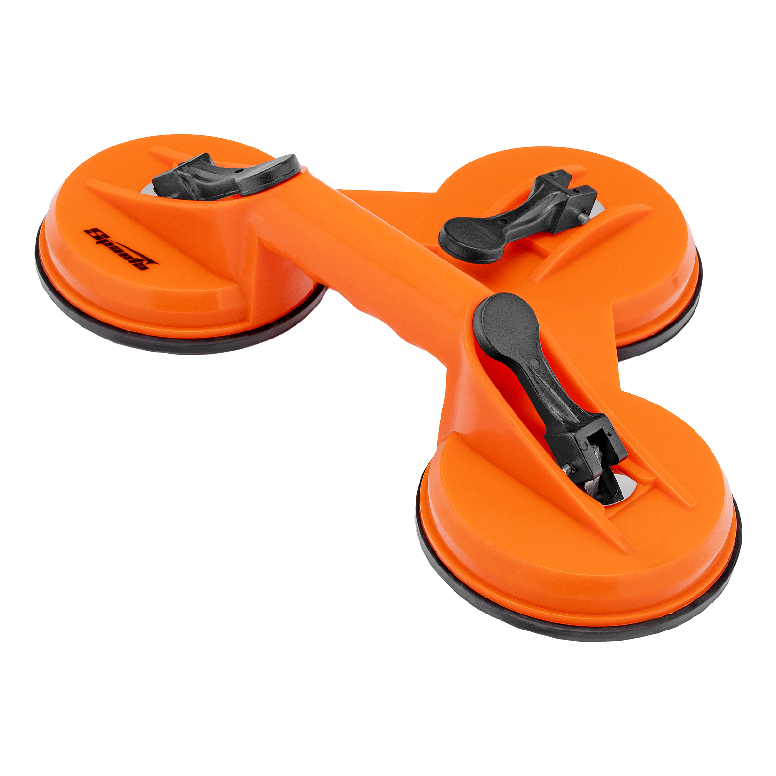 Тройной пластиковый стеклодомкрат Sparta 875156 — устройство для удержания, переноски и установки зеркал, стекол, столешниц, кафельной плитки и других гладких материалов. Три вакуумные присоски имеют зажимы, которые бережно, но крепко фиксируют их на поверхности. Стеклодомкрат будет полезен во время ремонта, а также пригодится в быту.